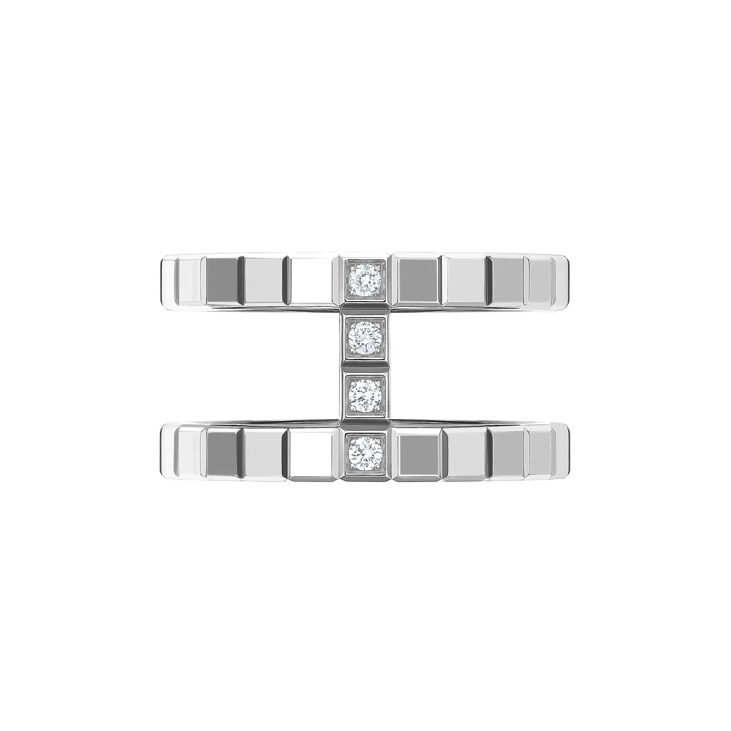 这款 Chopard Ice Cube 戒指采用 18K 道德白金打造,完美融合现代几何美感与低调奢华。立方体灵感的标志性设计在每个动作中捕捉光线,而总重约 0.04 克拉 的钻石为其增添细腻光芒。简洁的线条与精确的抛光工艺凸显出 Ice Cube 系列标志性的建筑优雅。