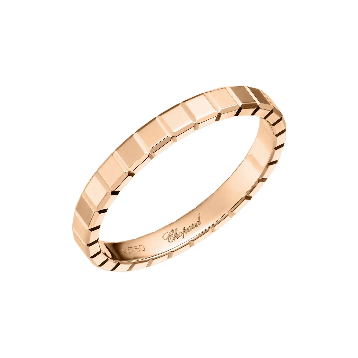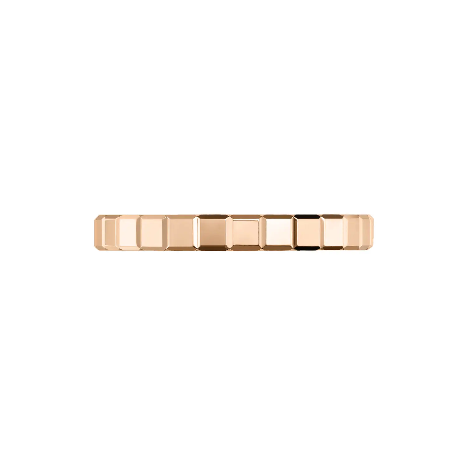 这款 Chopard Ice Cube Pure 戒指采用 18K 道德玫瑰金打造,展现出现代优雅与极简奢华的完美融合。立方体灵感的设计营造出迷人的光影效果,而精心抛光的表面如同细小的镜面,折射出独特光芒。每个细节都体现出精湛的工艺与 Ice Cube 系列标志性的建筑美感。