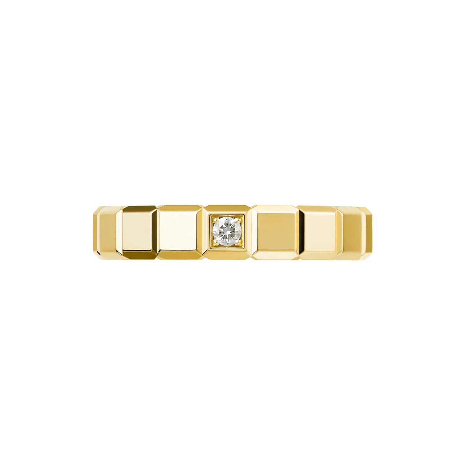 这款 Chopard Ice Cube Pure 戒指采用 18K 道德黄金打造,展现出现代优雅与精湛工艺。立方体灵感的经典设计完美折射光线,呈现柔和的金色光芒,如冰晶般闪耀。一颗约 0.03 克拉 的钻石为戒指增添了细腻光彩,同时保持极简的和谐美感。