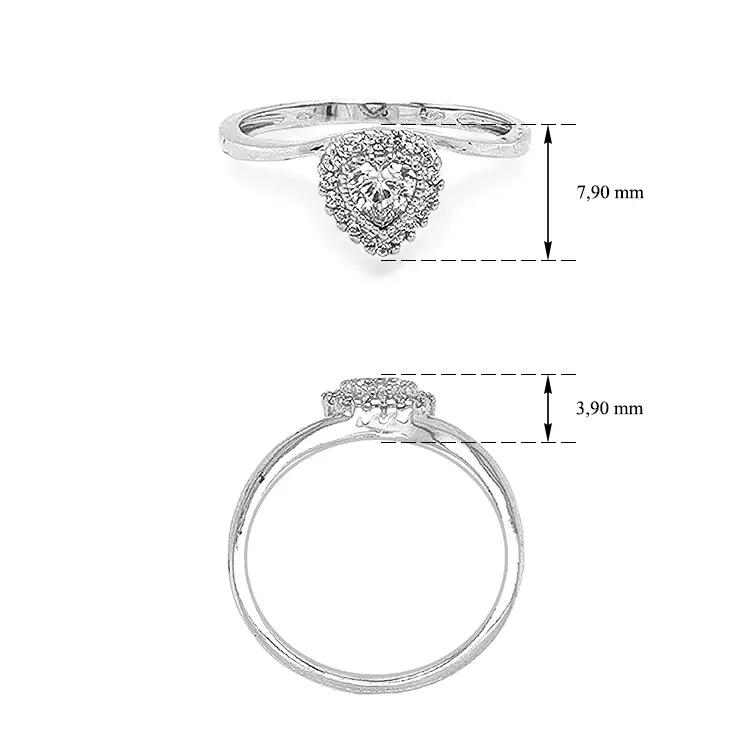 心形镶锆石金戒指
