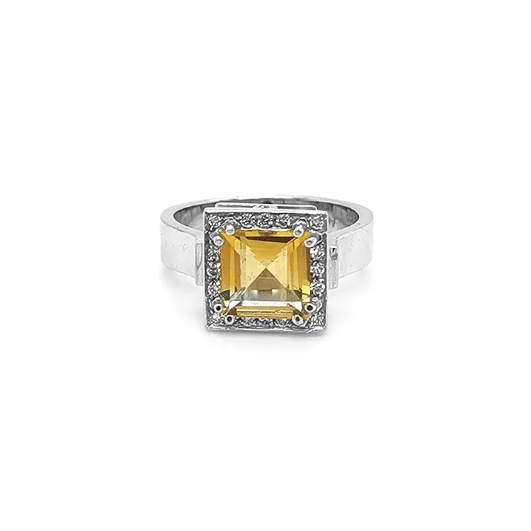 镶黄水晶和钻石的金戒指