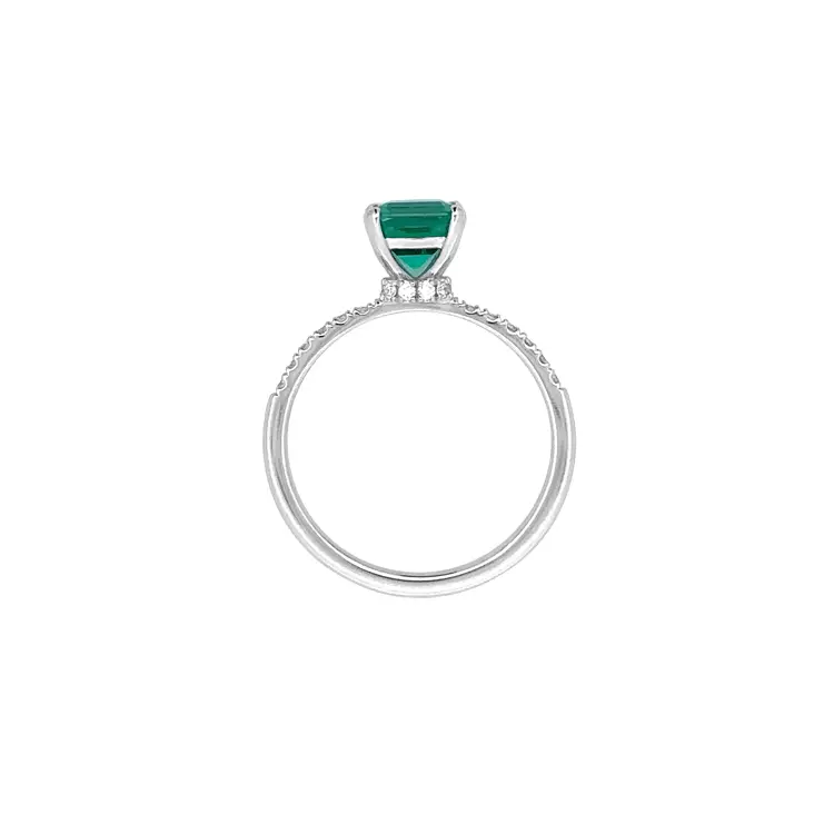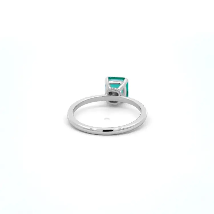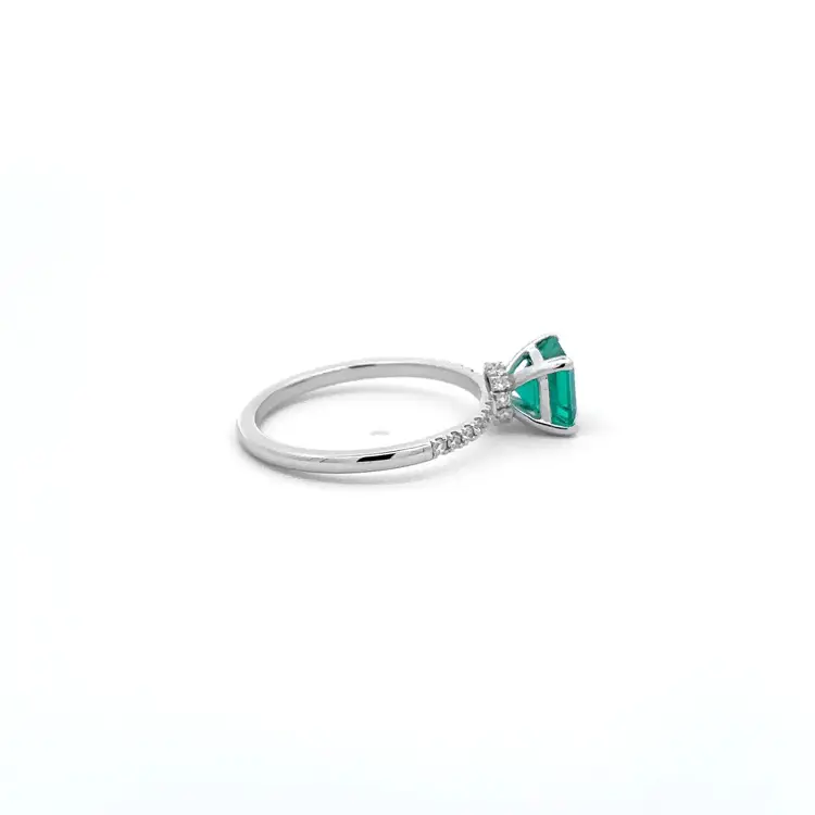 这款 Beny Jewellery 祖母绿钻石戒指展现了优雅与工艺的极致平衡。采用 18 kt (750/1000) 白金 打造,表面高亮抛光,中心镶嵌一颗 1.13 克拉 天然祖母绿(Asscher 切割),其深邃的绿色象征和谐与内在力量。