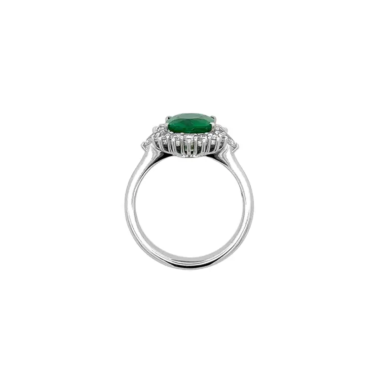 Chiếc nhẫn Beny Jewellery đính ngọc lục bảo và kim cương là biểu tượng của sự tinh tế và vẻ đẹp tự nhiên. Được chế tác từ vàng trắng 18 kt (750/1000) với bề mặt đánh bóng sáng gương, nhẫn tỏa ra vẻ sang trọng hiện đại hòa quyện cùng phong cách cổ điển. Tâm điểm là viên ngọc lục bảo tự nhiên 1,86 ct cắt dáng Cushion, mang sắc xanh rực rỡ tượng trưng cho sự hài hòa và sức sống.