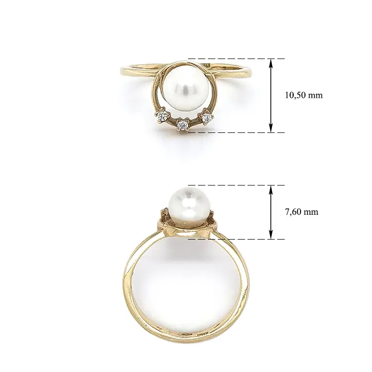 镶珍珠和锆石的金戒指