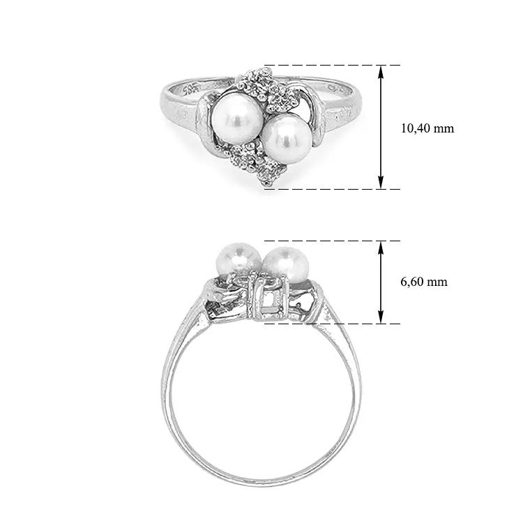 镶珍珠和锆石的金戒指