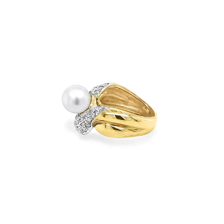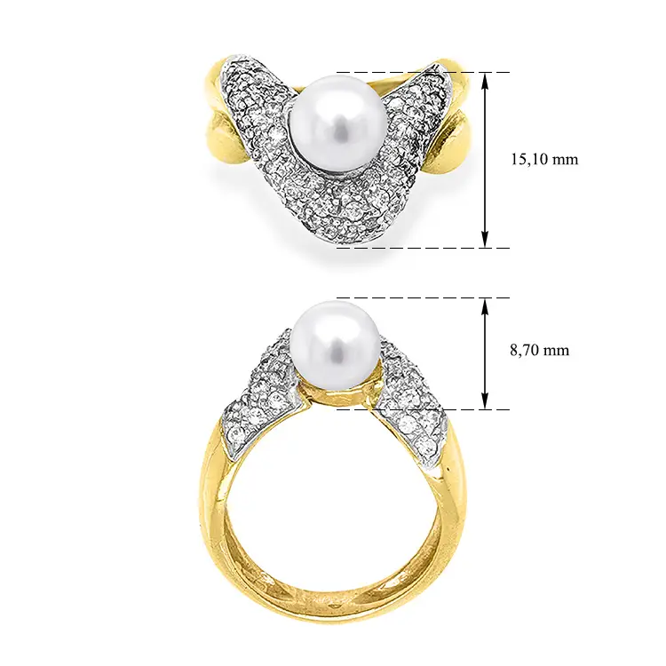 镶珍珠和锆石的金戒指