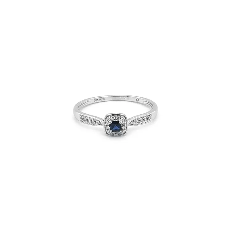 镶嵌蓝宝石和钻石的金戒指