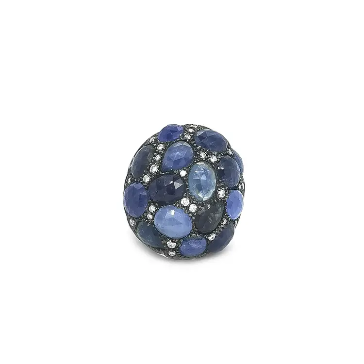 镶蓝宝石和钻石的金戒指