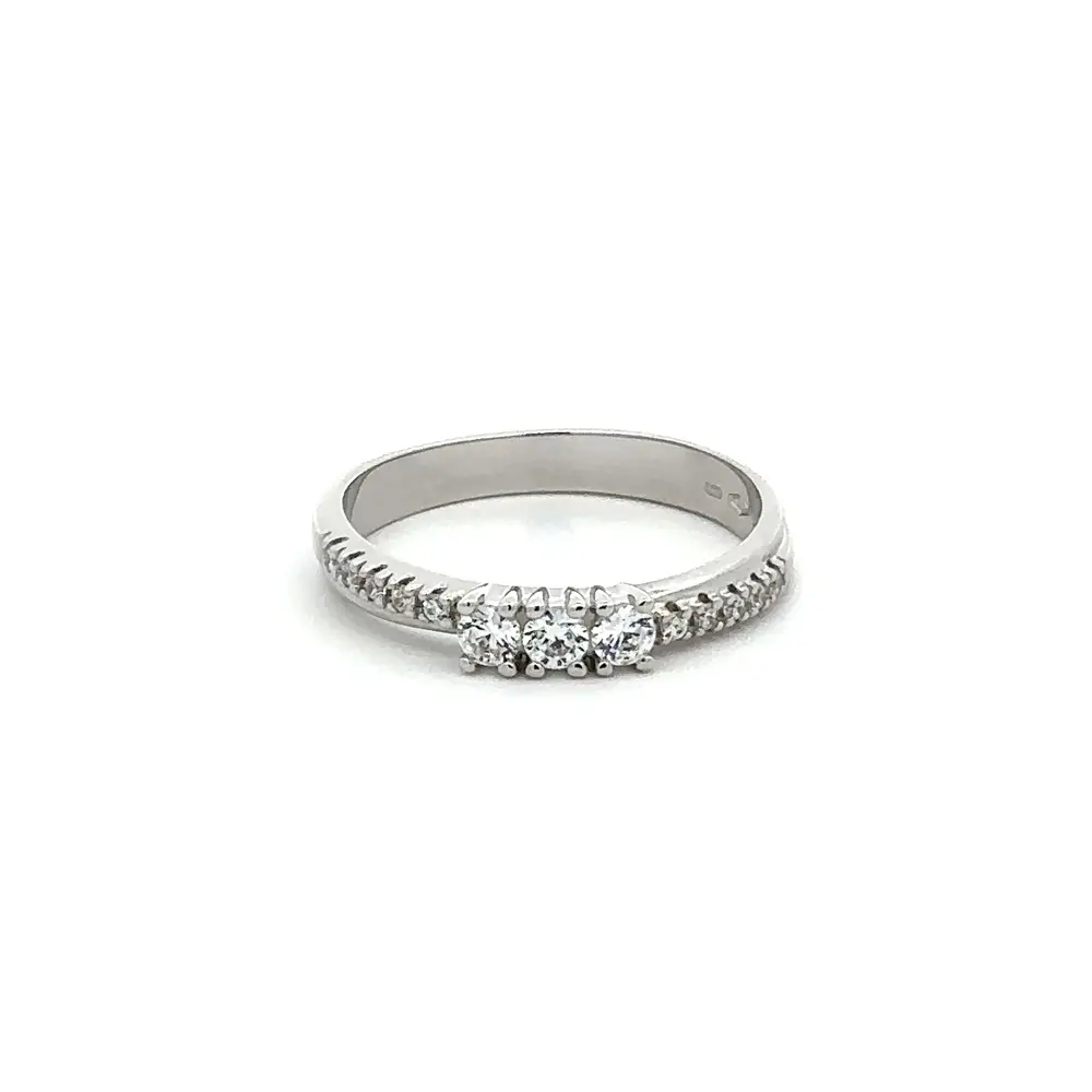 三颗锆石黄金戒指 以优雅而均衡的设计脱颖而出,将细腻质感与柔和闪耀完美结合。三颗中央锆石形成和谐的视觉焦点,使戒指呈现出经典而精致的风格。极简设计让戒指既适合单独佩戴,也适合与其他首饰叠戴。
