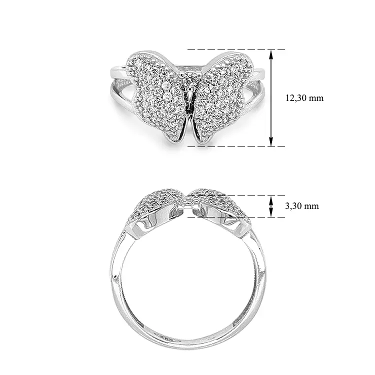 蝶形镶锆石金戒指