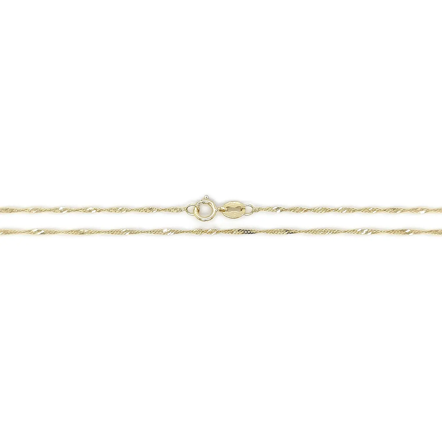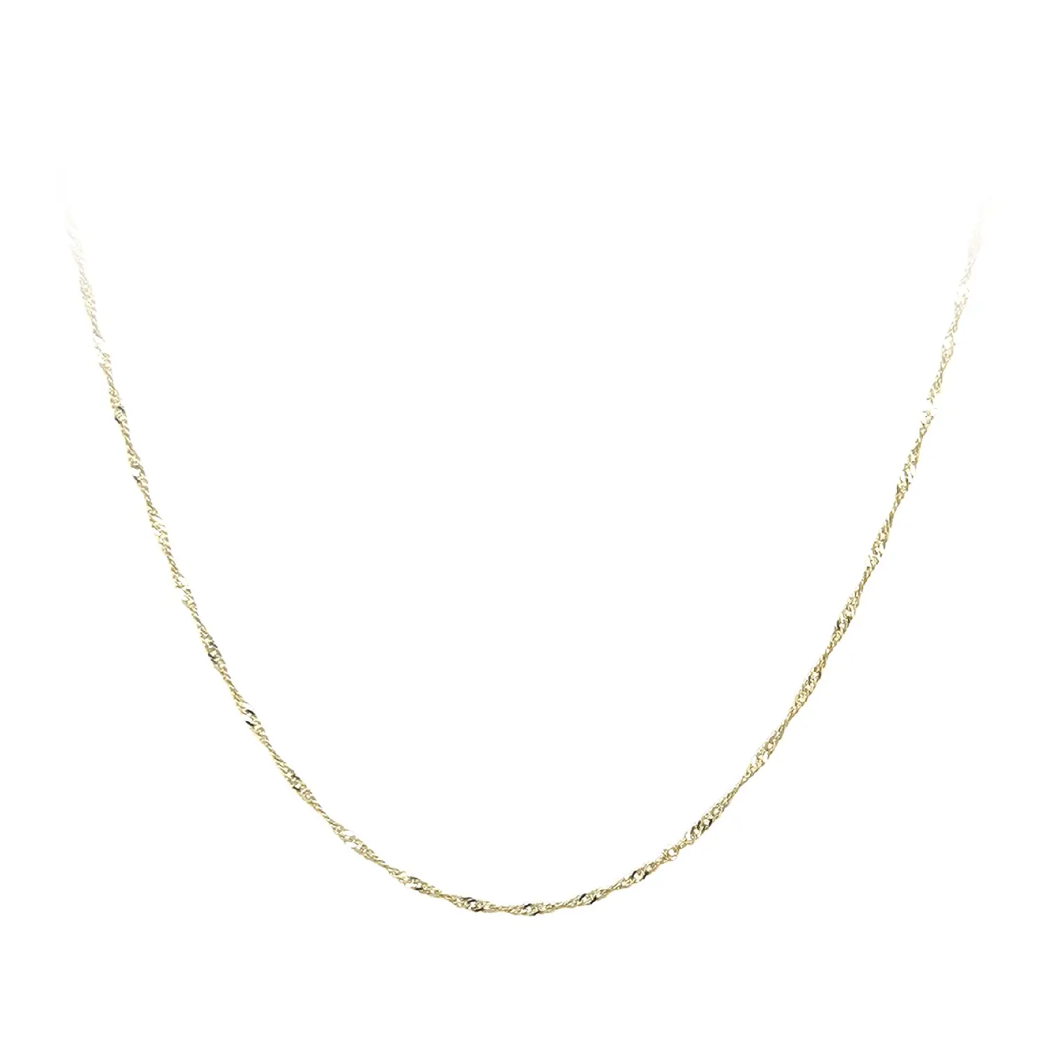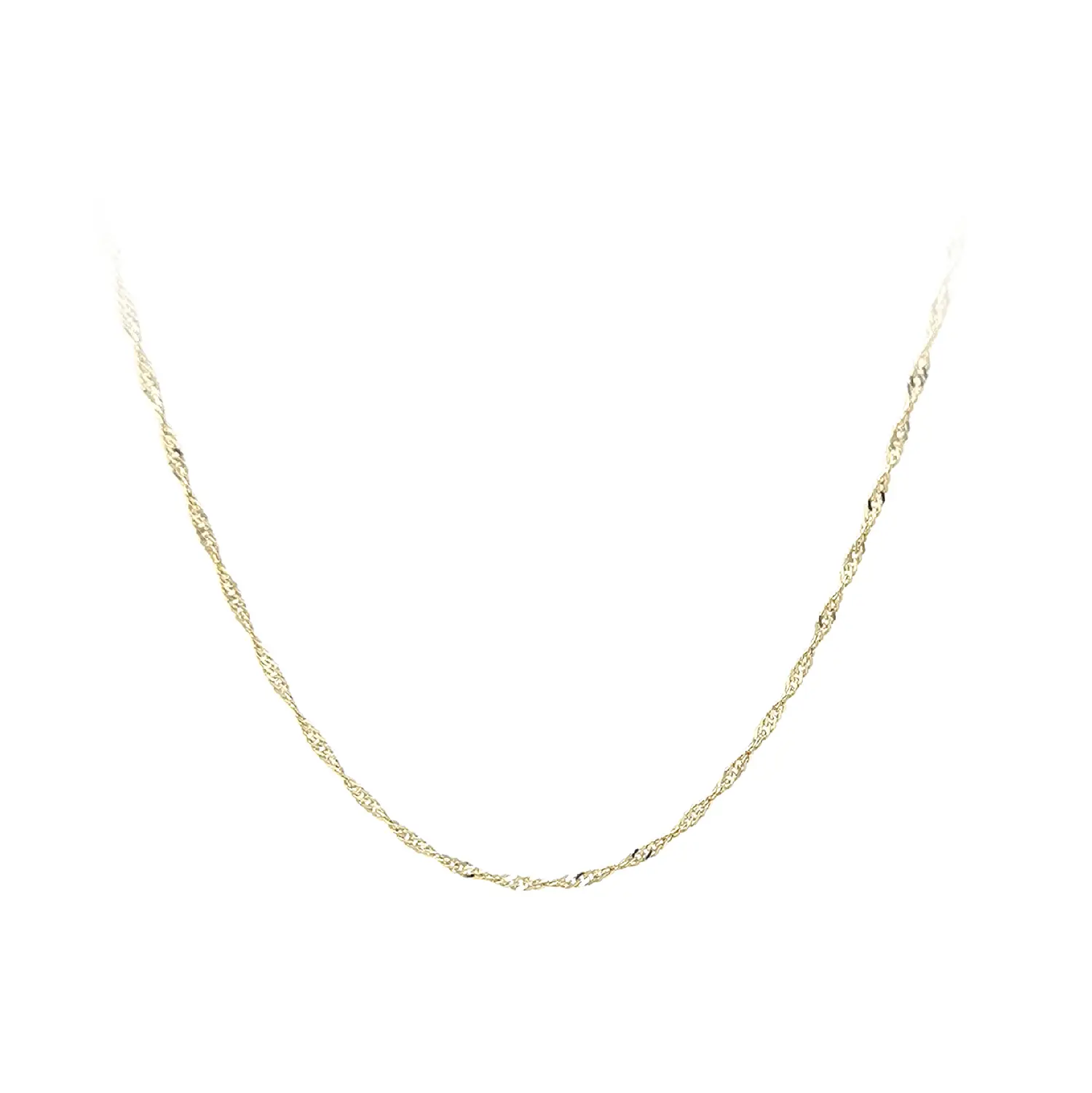 这款新加坡式黄金项链采用精致的螺旋扭绞设计,能够优雅地反射光线,呈现细腻而高贵的光泽。轻盈而精致的外观,适合日常佩戴及正式场合。