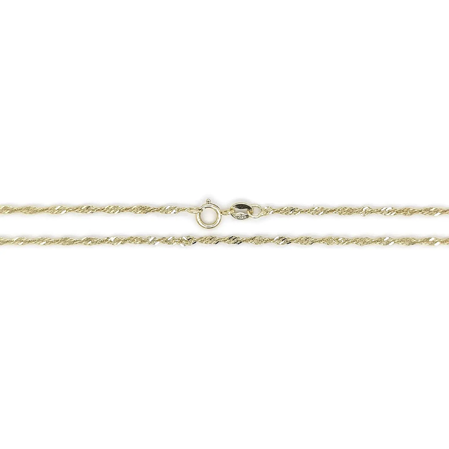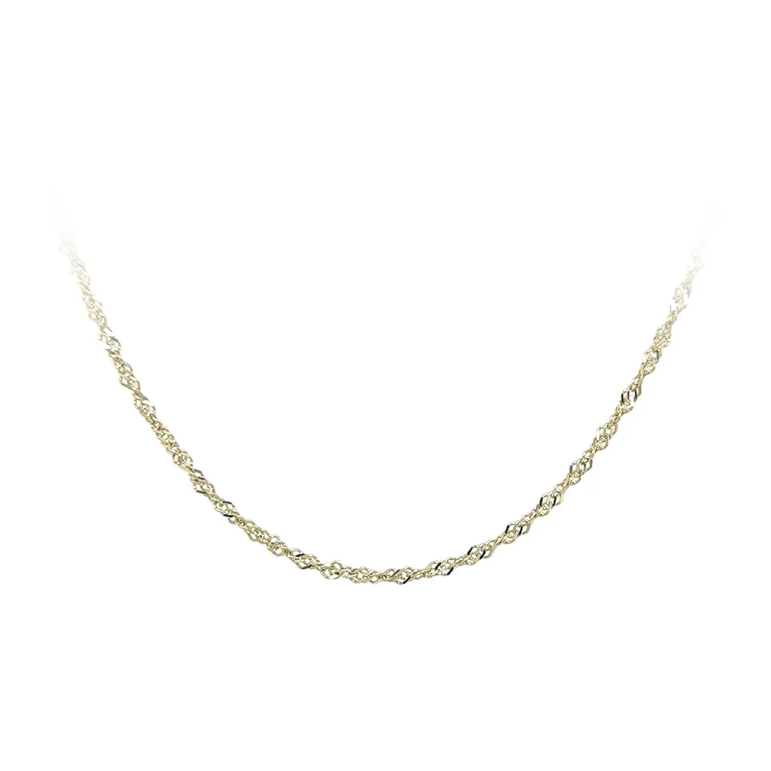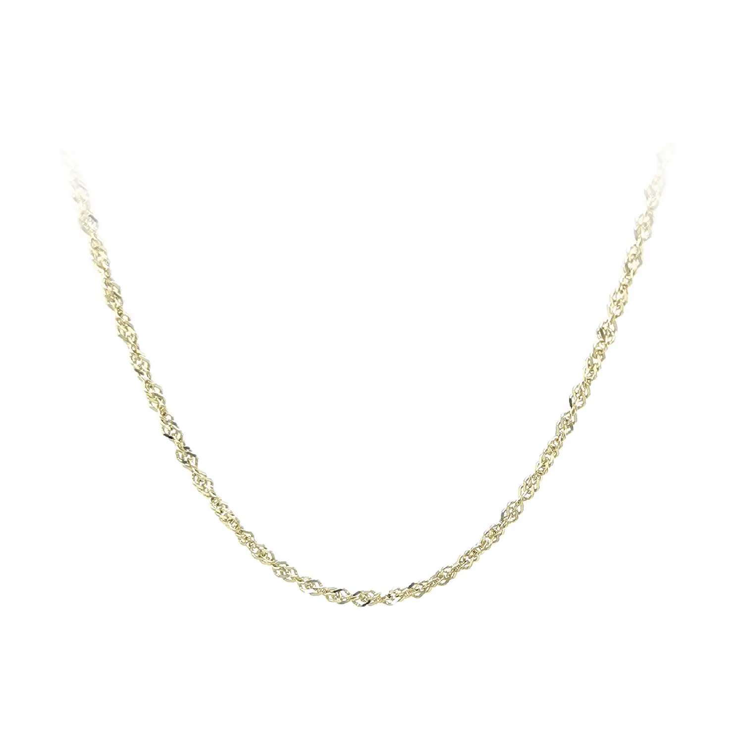 新加坡式黄金项链以其精致的扭绞结构著称,能够呈现优雅的光泽,赋予首饰细腻而富有表现力的外观。链节制作精准,佩戴轻盈,而1.70 毫米的宽度则增强了整体质感,突显经典而永恒的优雅。