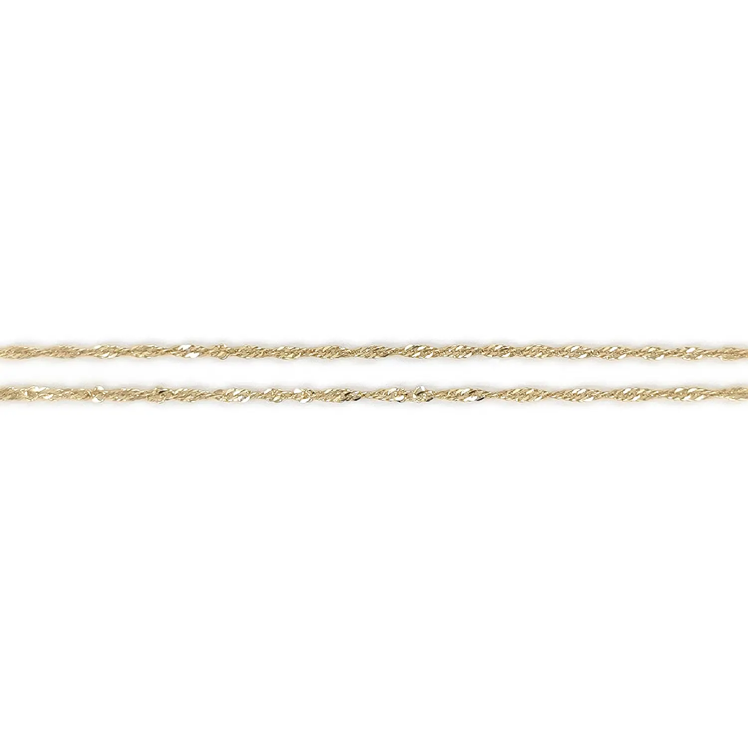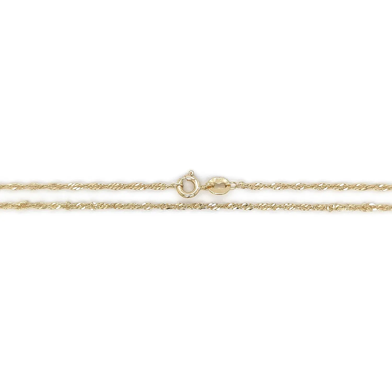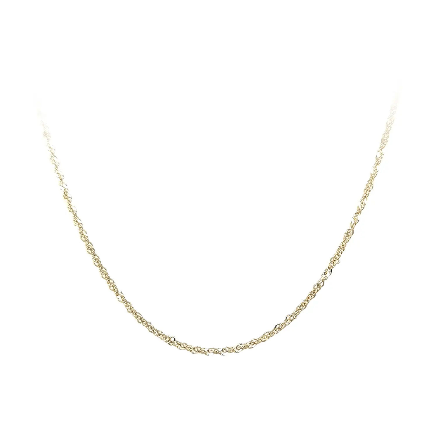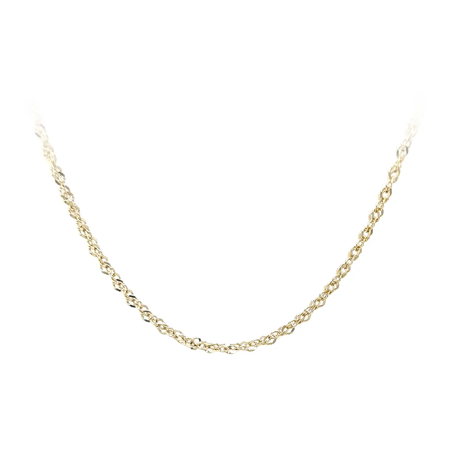 这款 新加坡链式金项链 以其精致的 扭绞结构 脱颖而出,能够巧妙反射光线,呈现出灵动而优雅的光泽。链节制作细腻轻盈,1.60 毫米的宽度 带来恰到好处的平衡感,既有存在感,又适合日常佩戴。