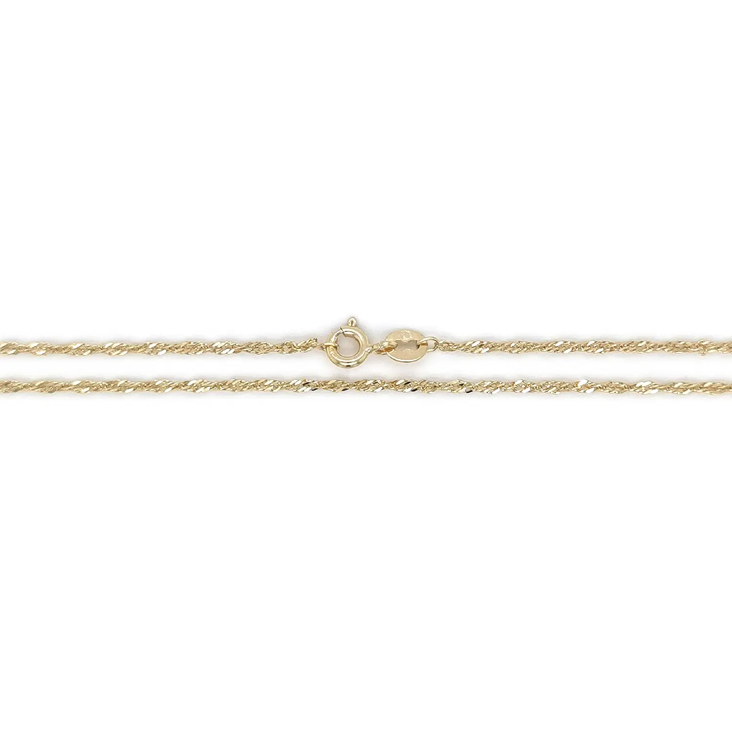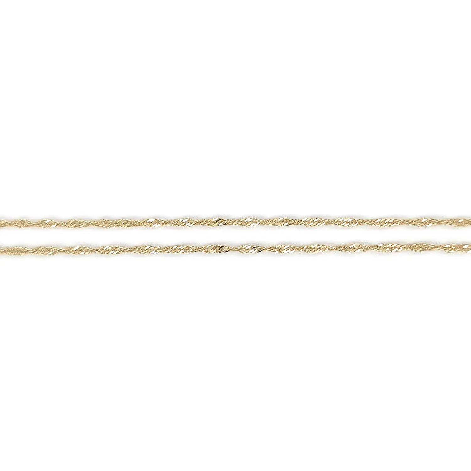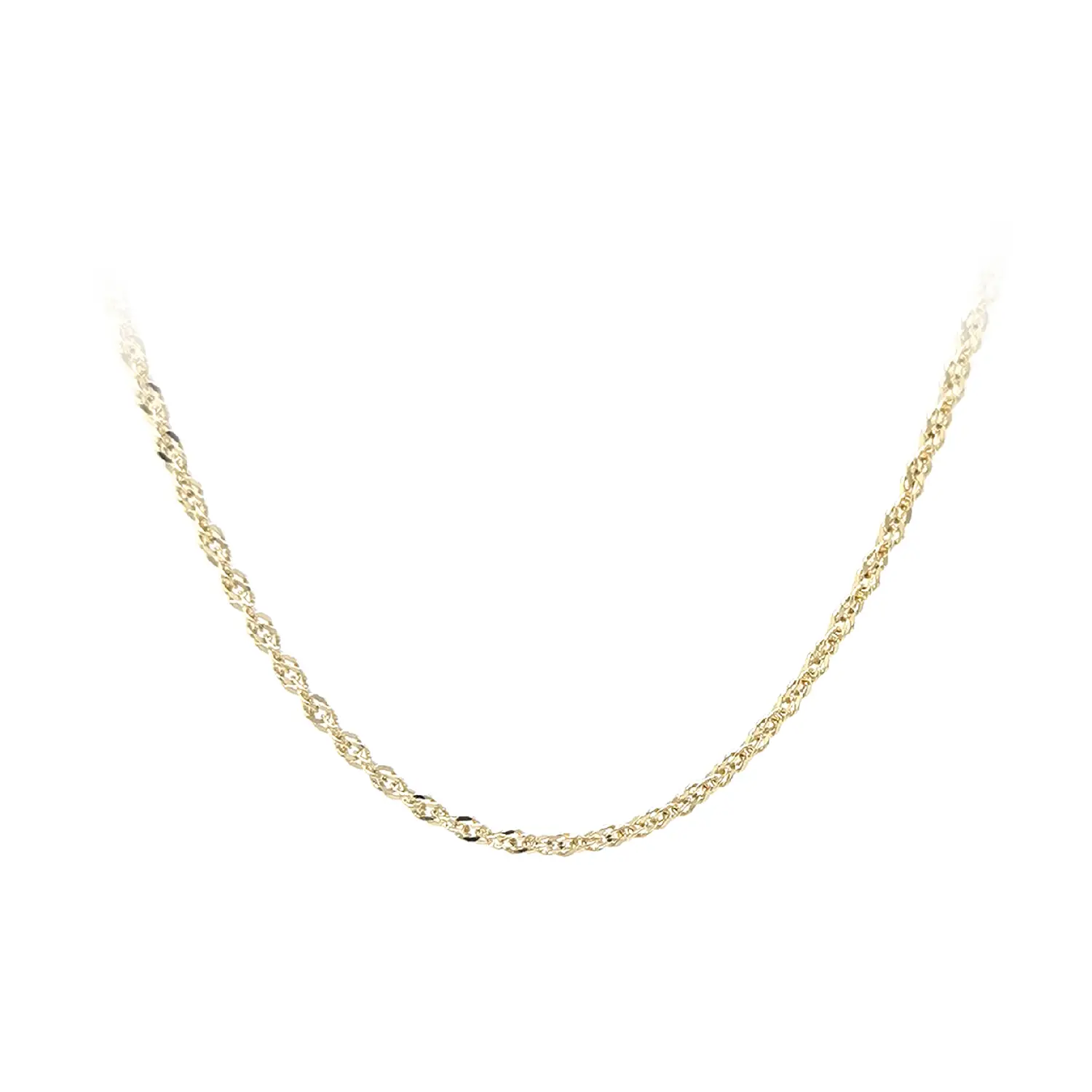 这款金质项链采用经典的新加坡链式,以精致的扭绞结构呈现出迷人的光泽,在光线下熠熠生辉,尽显优雅气质。精细打造的链节轻盈细腻,而 1.50 毫米的宽度 则保持了低调而百搭的外观,适合日常佩戴或叠戴。