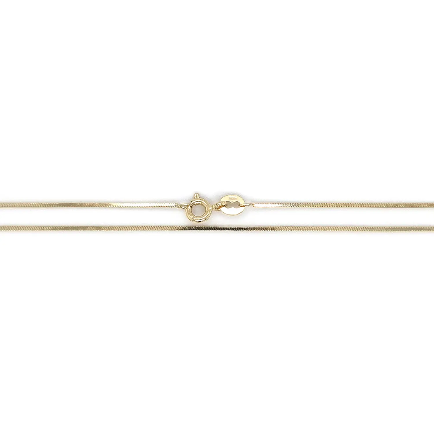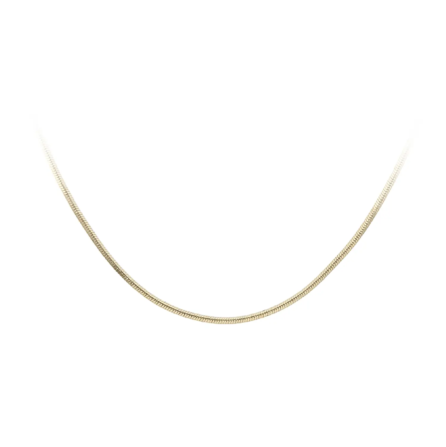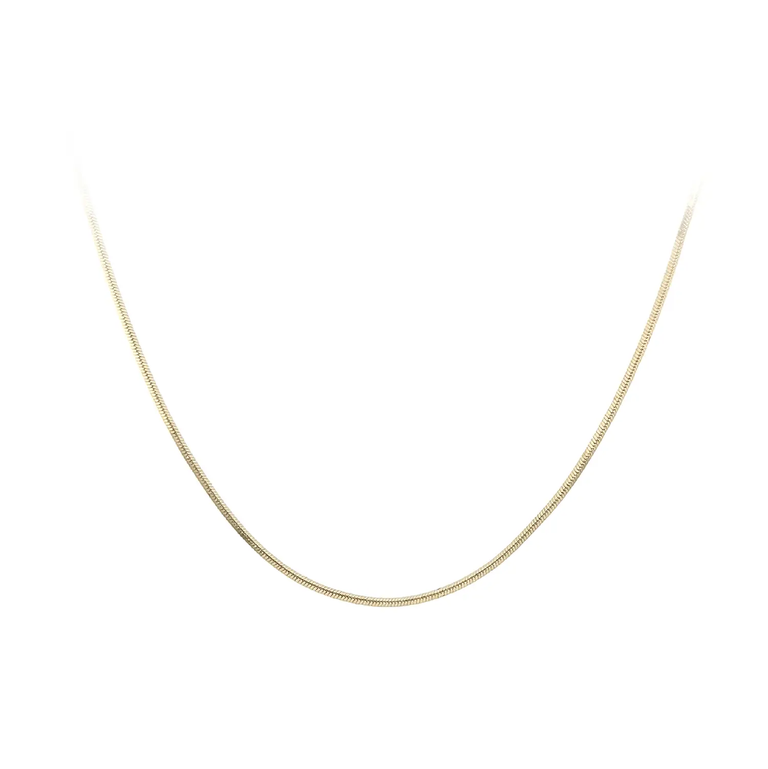 精致的黄金蛇形链,表面光滑、结构紧密,展现出优雅的光泽。柔韧的设计使其自然贴合颈部,呈现简约而高雅的效果。