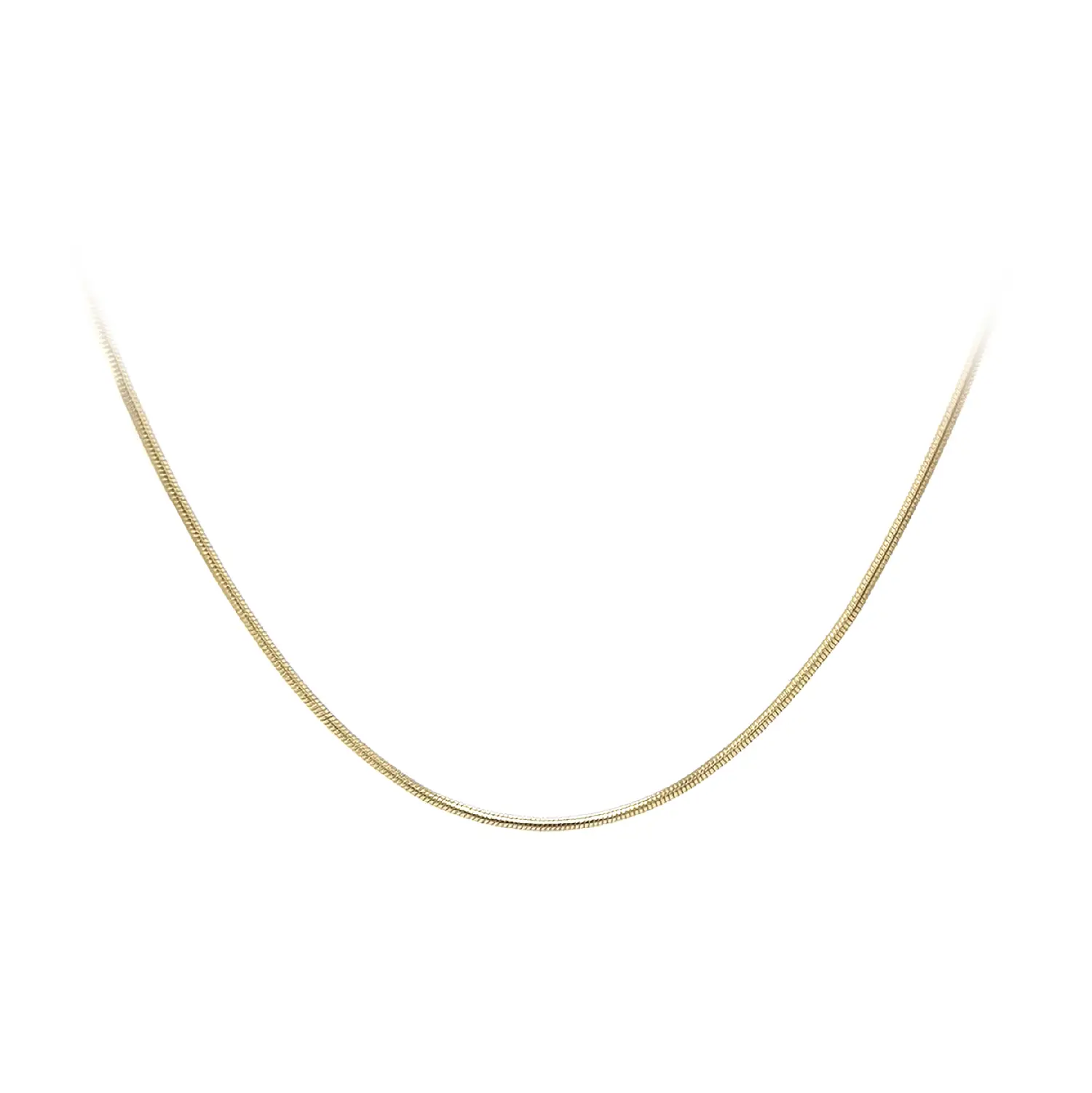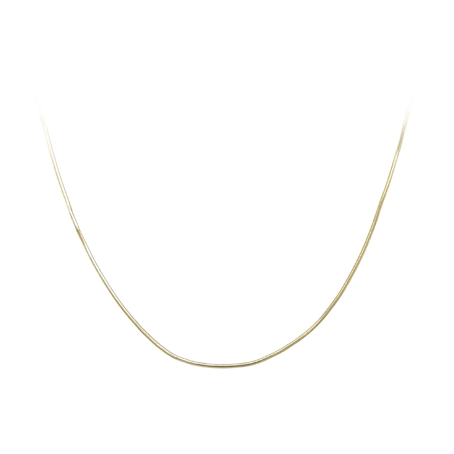 这款蛇骨造型黄金项链以其顺滑紧致的结构脱颖而出,在颈部呈现出优雅而流畅的视觉效果。简约的设计没有明显的链节,整体显得干净而精致,非常适合单独佩戴,也可作为搭配吊坠的细腻底链。蛇骨链以其柔和光泽和永恒风格而广受欢迎。