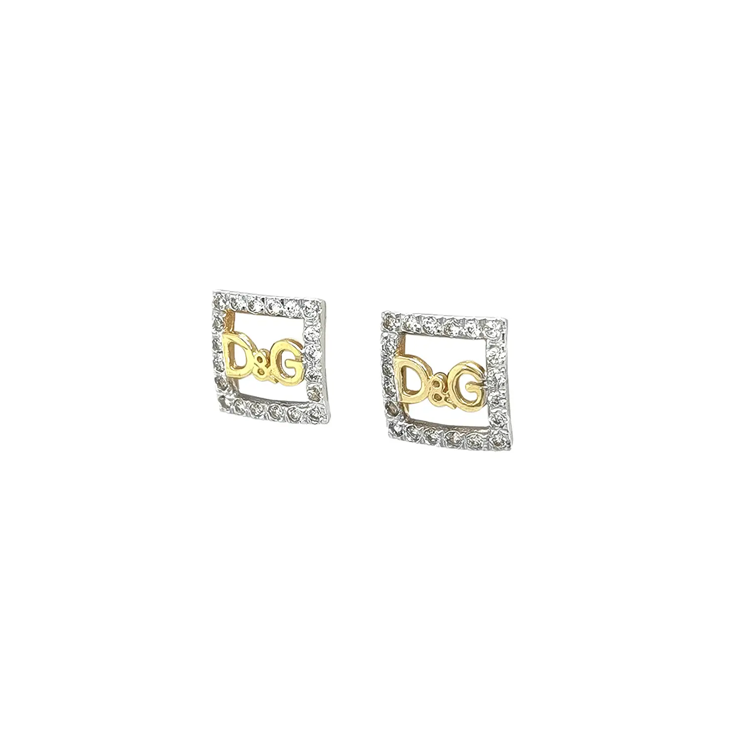 镶锆石黄金 D&G 方形耳钉
