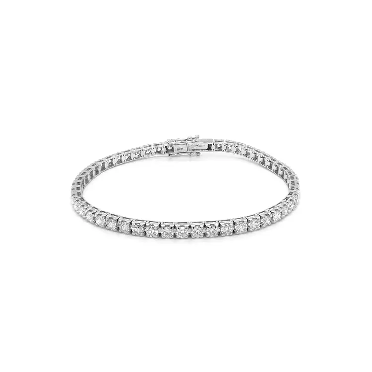手链镶嵌 天然白色圆形切割钻石 (Round),总重 4.15 克拉,颜色等级 G–H,净度 VS。每一颗钻石都由匠人精心镶嵌,形成连续的光之河,优雅地环绕手腕。