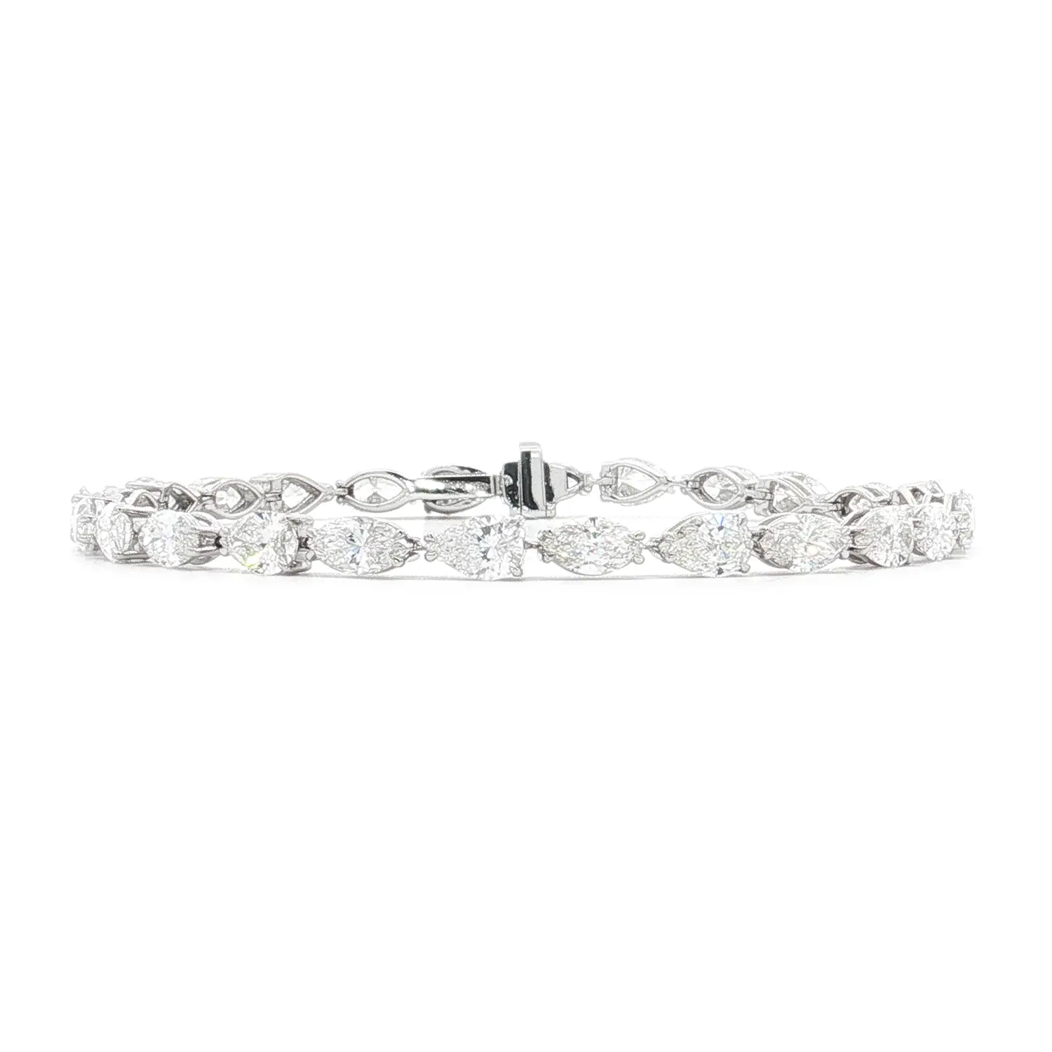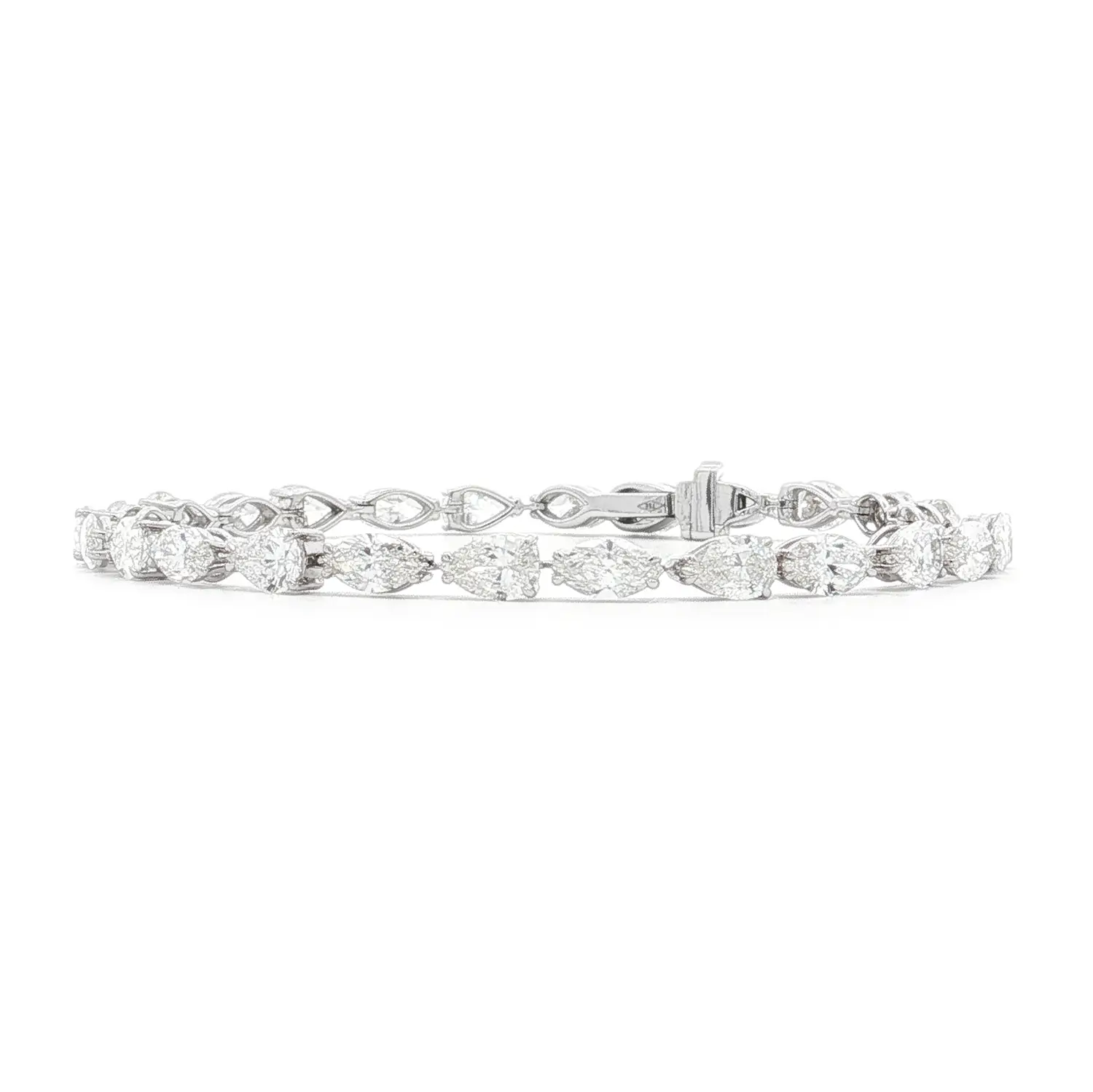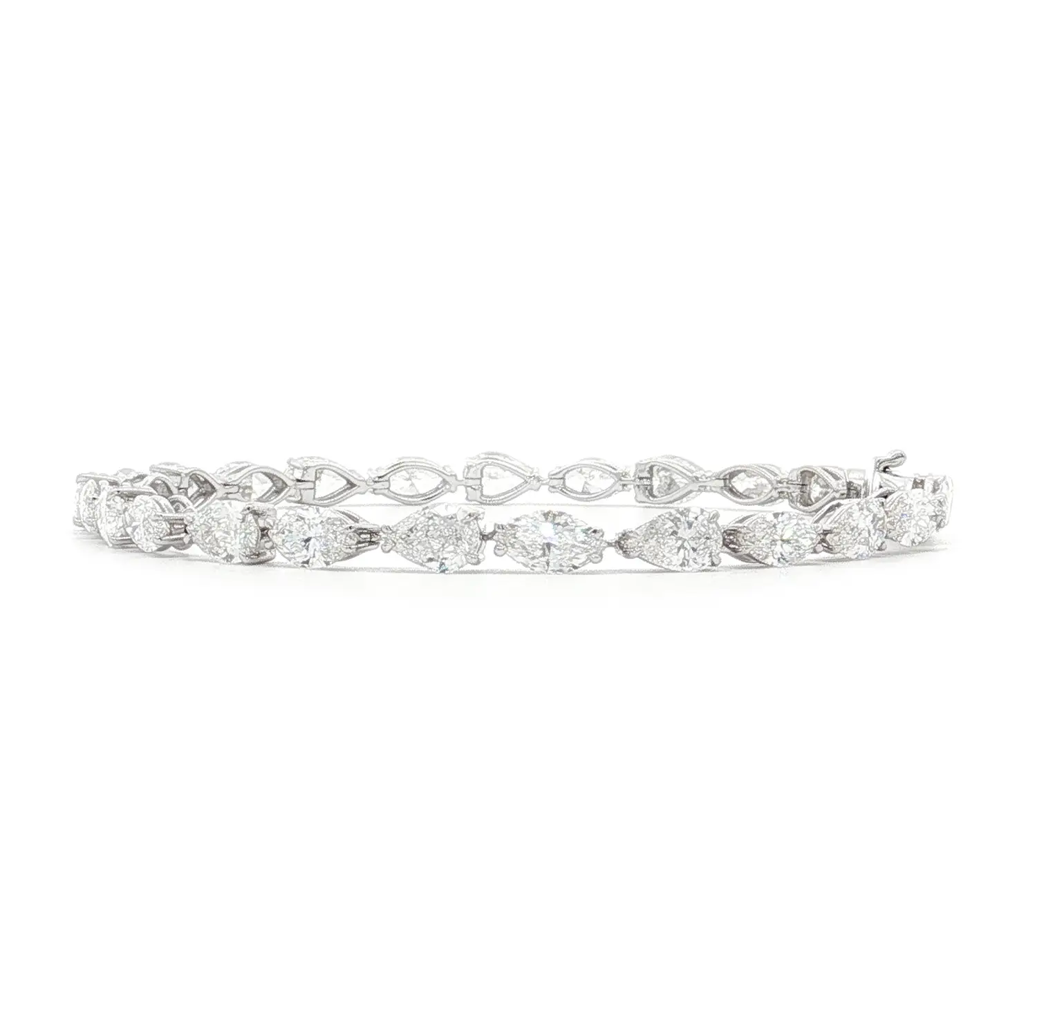 手链镶嵌 两种天然白钻:13 颗梨形切割钻石(总重 4.42 ct)和 13 颗马眼形切割钻石(总重 4.27 ct)。所有钻石均为 G 色、VS 净度,光彩夺目,流光溢彩。