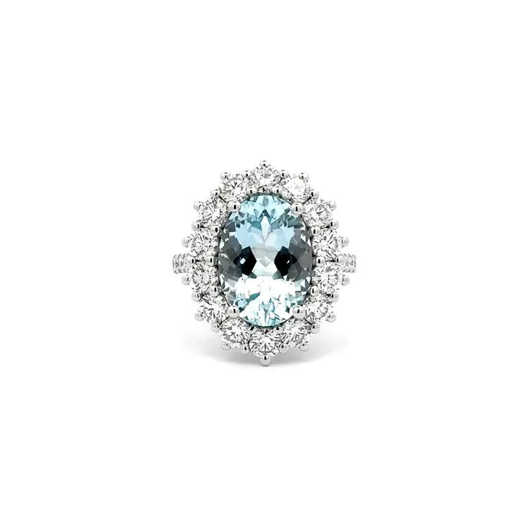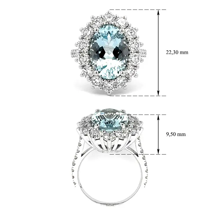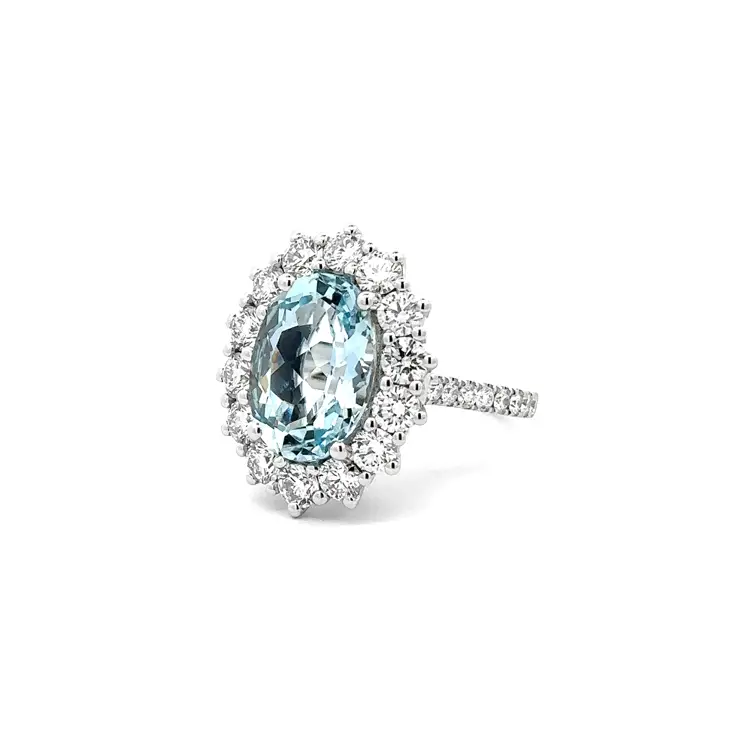 金色海蓝宝石镶钻戒指