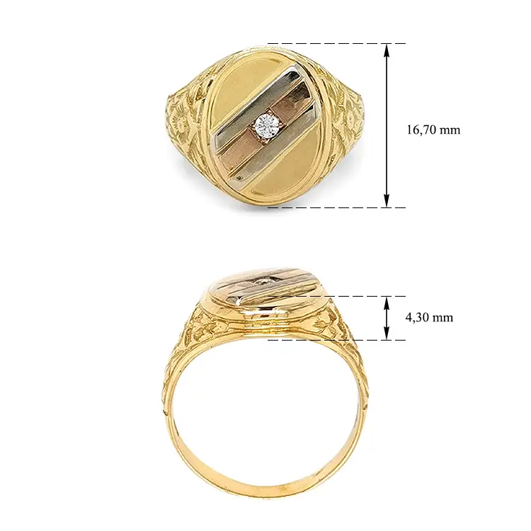 镶锆石金色男士戒指