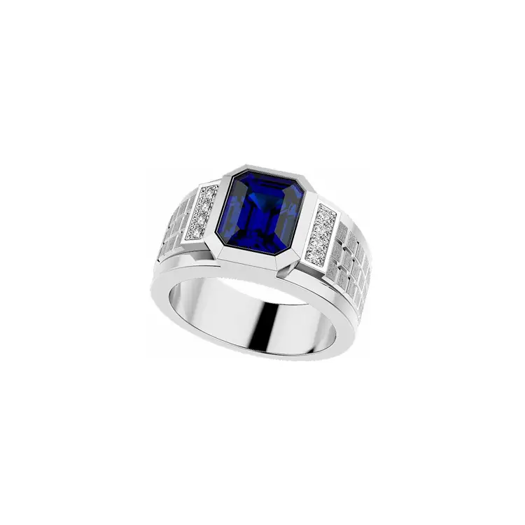 中心主石为 蓝宝石(1 颗)4.49 ct,祖母绿形切工 / Emerald,深邃蓝色(来源:天然)。辅以 钻石(8 颗),圆形切工 / Round,白色(来源:天然),为戒指增添火彩与对比,衬托蓝宝石的饱和度与结构美。成就一枚 经典、醒目且 优雅 的男士戒指,鲜明表达佩戴者的个人风格。