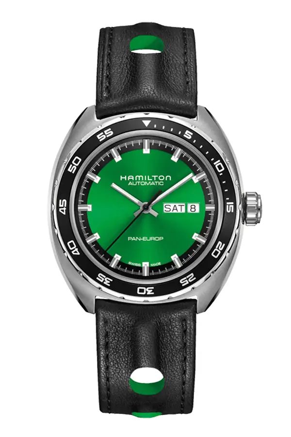 Hamilton American Classic Pan Europ Day-Date Automatic H35415761 将 70 年代的复古设计与现代瑞士精准工艺完美融合。它是那些欣赏大胆外观、品位与技术质量兼备的男士的理想之选。