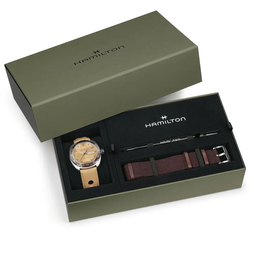 Hamilton品牌历史悠久,可追溯到1892 年在美国宾夕法尼亚州兰开斯特成立之时。最初,它是著名的铁路精密怀表供应商,后来成为美国军用手表的官方供应商。如今,汉米尔顿隶属于瑞士斯沃琪集团,将美国的开拓精神与瑞士的制表技术相结合。