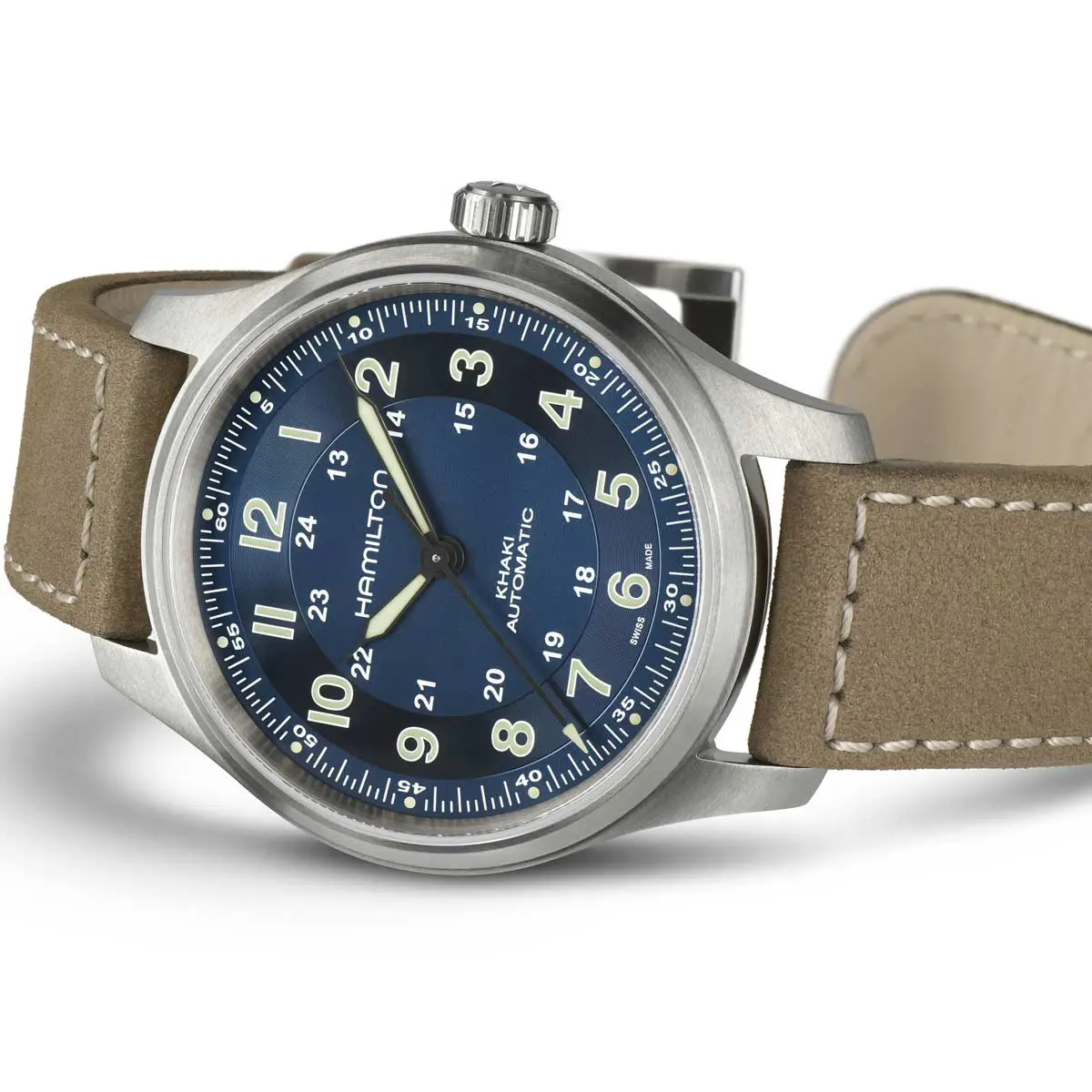 卡其野战系列是汉米尔顿最具标志性的系列之一,汲取了品牌丰富的军事传统。该系列的灵感源自 20 世纪中叶美国士兵的原始手表,体现了耐用性、功能性和易读性--这些都是战场上和日常生活中的关键价值。