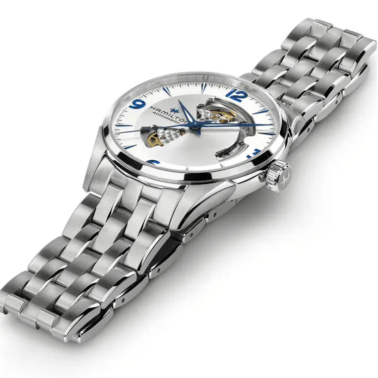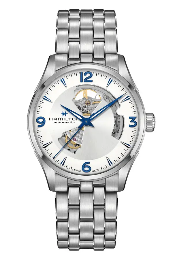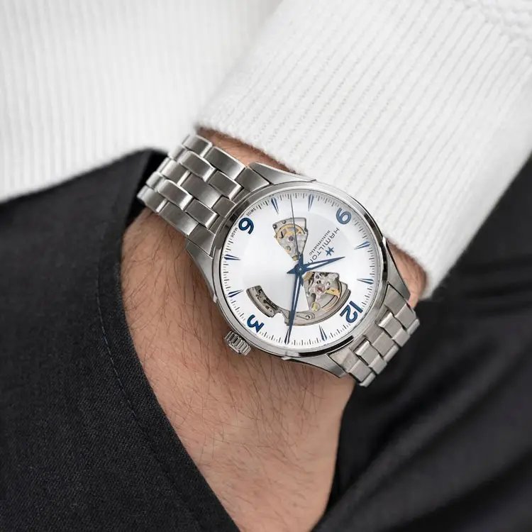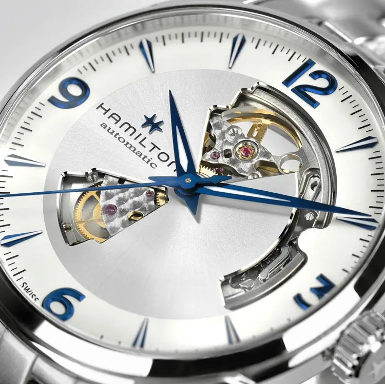 Hamilton Jazzmaster Open Heart H32705152 是经典优雅与现代制表技艺的完美融合。其标志性特色是开放式银色表盘,让人可以直观欣赏机械机芯的核心运作,展现该款腕表的独特魅力。