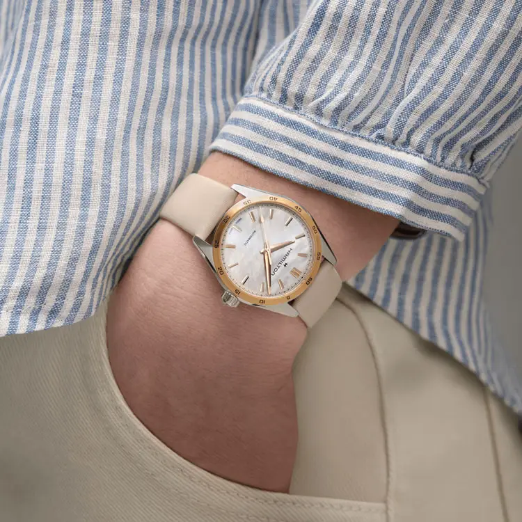 Jazzmaster是汉米尔顿优雅精致的系列,将经典手表设计与现代风格完美结合。其灵感来自爵士乐世界--传统价值与创造力的和谐统一,体现在腕表简洁的线条、精致的细节和多变的风格上。