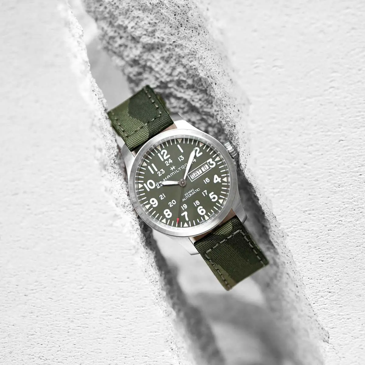 卡其野战系列是汉米尔顿最具标志性的系列之一,汲取了品牌丰富的军事传统。该系列的灵感源自 20 世纪中叶美国士兵的原始手表,体现了耐用性、功能性和易读性--这些都是战场上和日常生活中的关键价值。