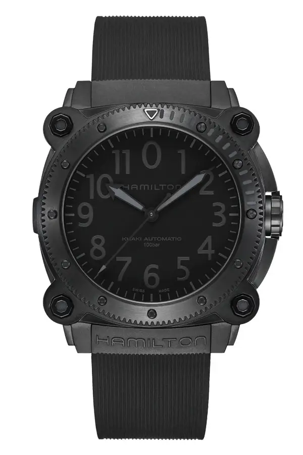 卡其海军系列的典型特征包括易读的大表盘、旋转式月轮、旋入式表冠,部分表款的防水深度可达 300 米。该系列既有自动表款,也有石英表款,包括潜水计时码表和标志性的蛙人腕表(Frogman)--这款腕表最初是为军事潜水员设计的,如今已成为技术先进的现代款式。