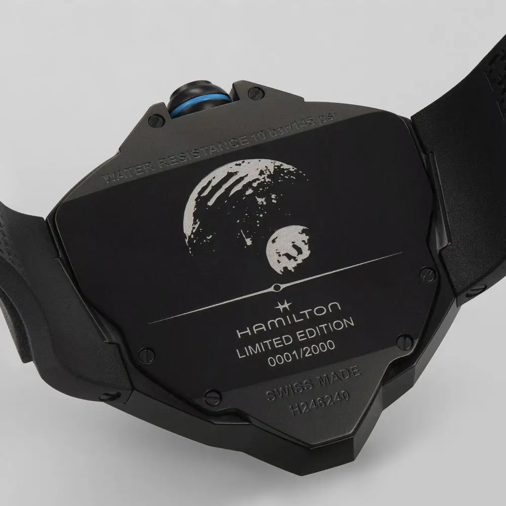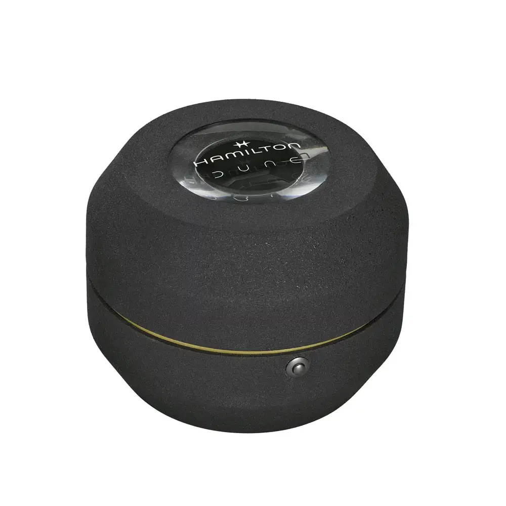 Hamilton Ventura Edge Dune 限量版 H24624330 是一款致敬科幻电影《沙丘》的杰出腕表。此限量版以其前卫设计与坚固结构脱颖而出。黑色PVD涂层不锈钢表壳尺寸为 51.05 × 47.15 毫米,展现出强烈的个性。