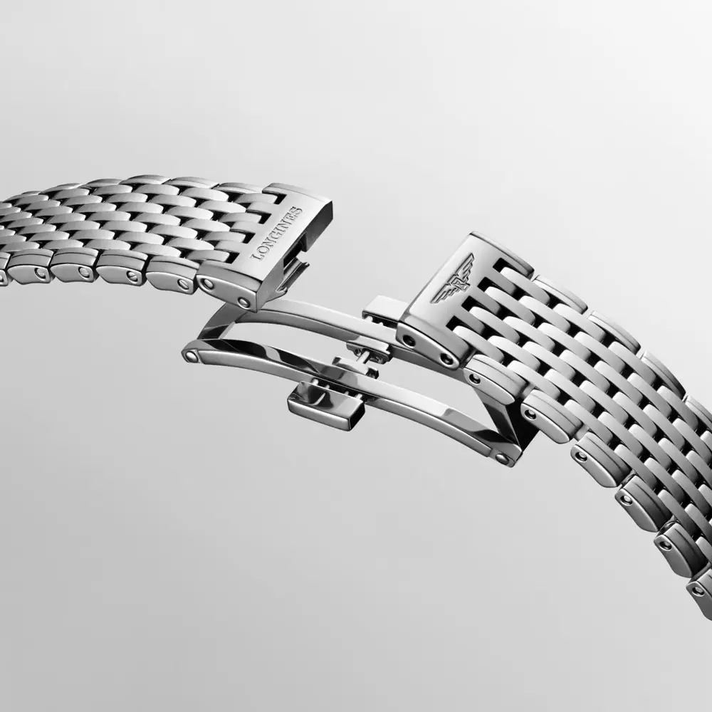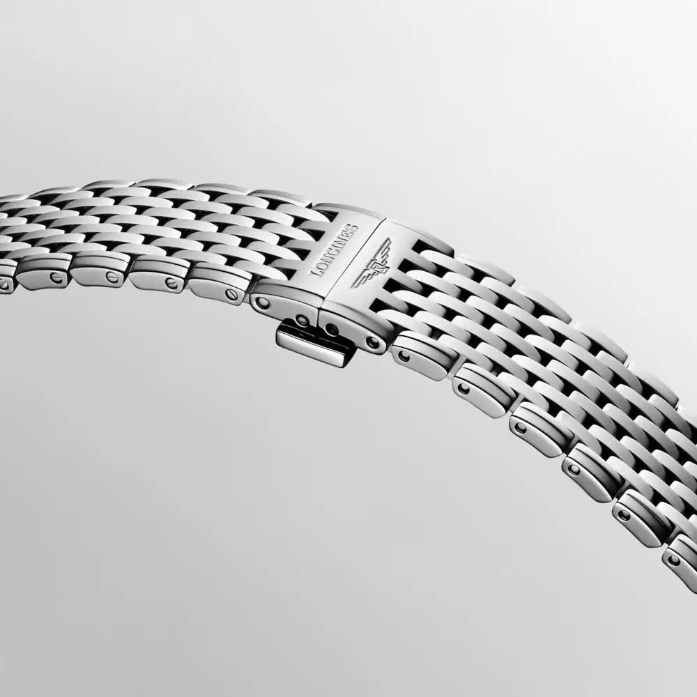 腕表内部搭载 瑞士石英机芯 L420,确保精准与稳定。配备 精钢表链与三重安全折叠表扣,结合优雅与极致舒适。此表完美展现浪琴表的核心价值——传统、女性优雅与精湛制表工艺。
