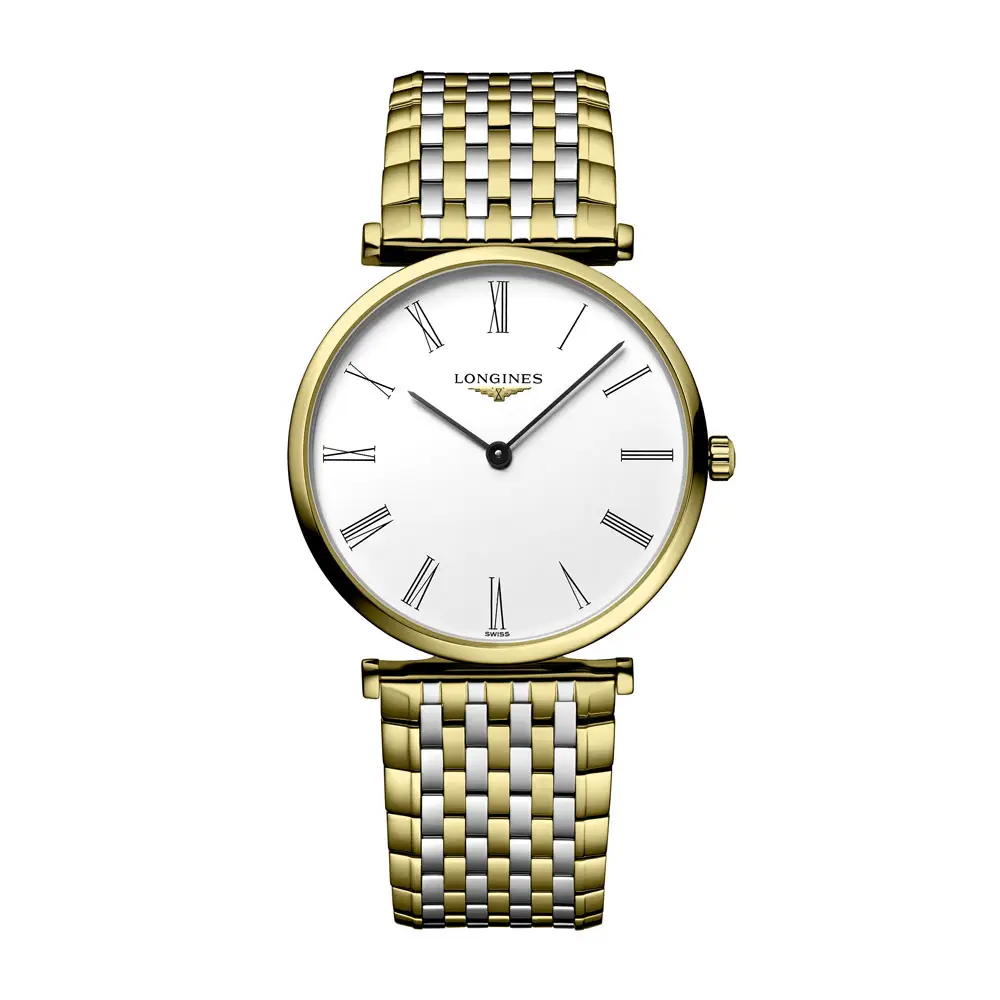 腕表搭载 瑞士石英机芯 L420,确保精准与可靠。搭配 镀黄色 PVD 精钢表链与三重安全折叠表扣,佩戴舒适稳固。此款腕表完美展现浪琴表的核心理念——传统、优雅与细节之美。