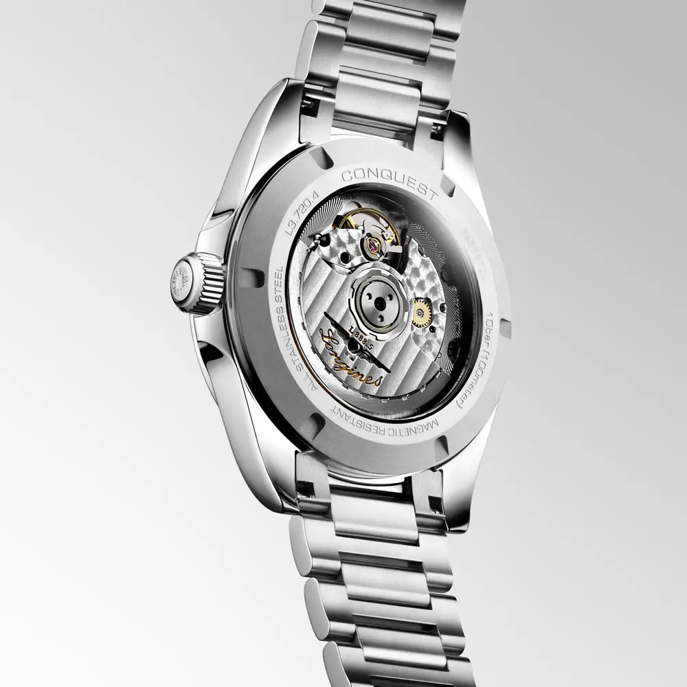 腕表搭载 Longines L888 自动机芯,振频为 25,200 次/小时,提供 最长约 72 小时动力储存。腕表具备 日期显示功能,并配备 双面防反射蓝宝石玻璃,具有优异的抗刮性能。