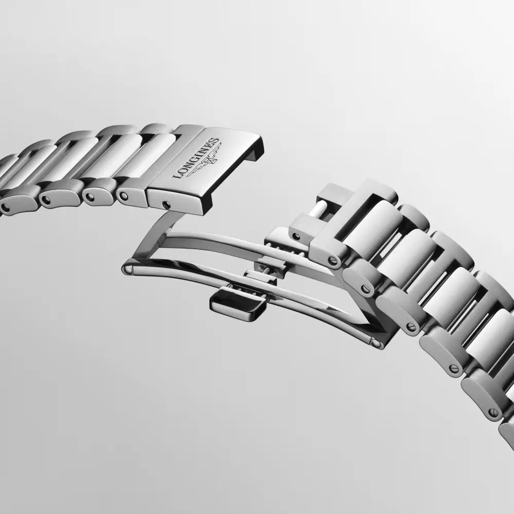 腕表配备 不锈钢表链与安全折叠表扣,佩戴舒适且安全。凭借 10 ATM / 100 m 防水性能、优质机芯和通用尺寸设计,适合日常佩戴以及运动优雅场合。