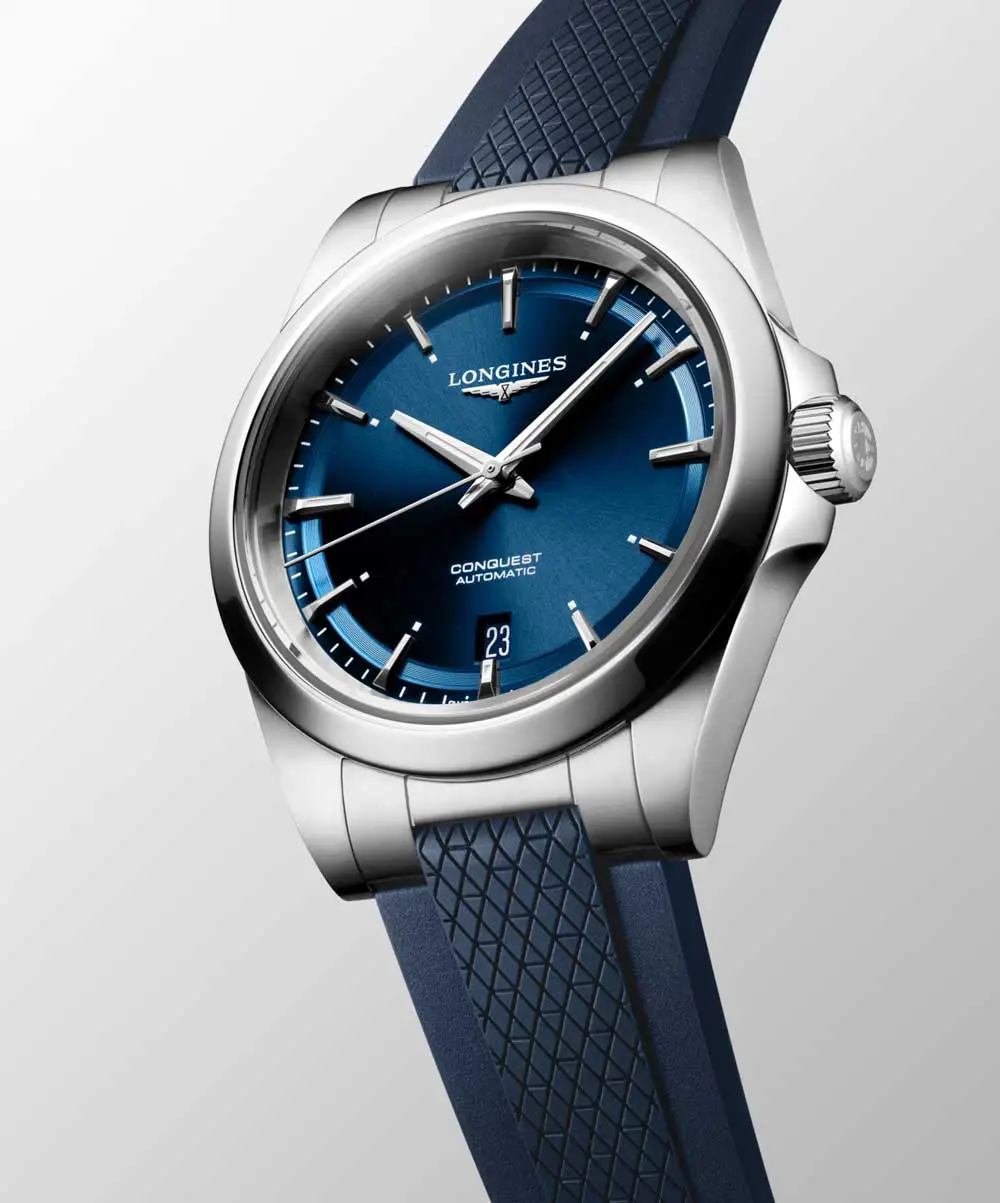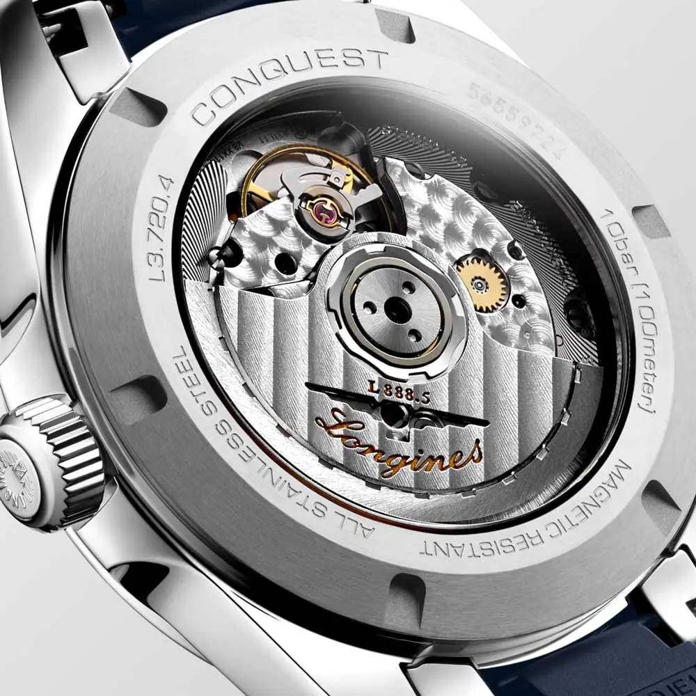 内部搭载动力强劲的L888.5 自动机芯,动力储存长达 72 小时,配备硅质螺纹,具有更强的抗磁性。腕表配备蓝色橡胶表带,搭配折叠式表扣和微调系统,即使在运动时也能确保舒适性。浪琴表康卡斯系列腕表集可靠的性能、永恒的风格和瑞士精准度于一身。