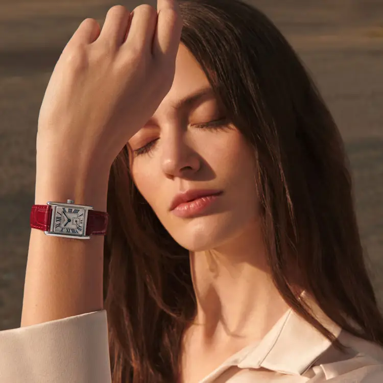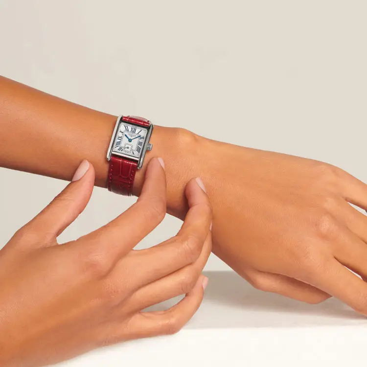 腕表配有 奢华红色鳄鱼皮表带,搭配经典针扣,佩戴舒适且安全。