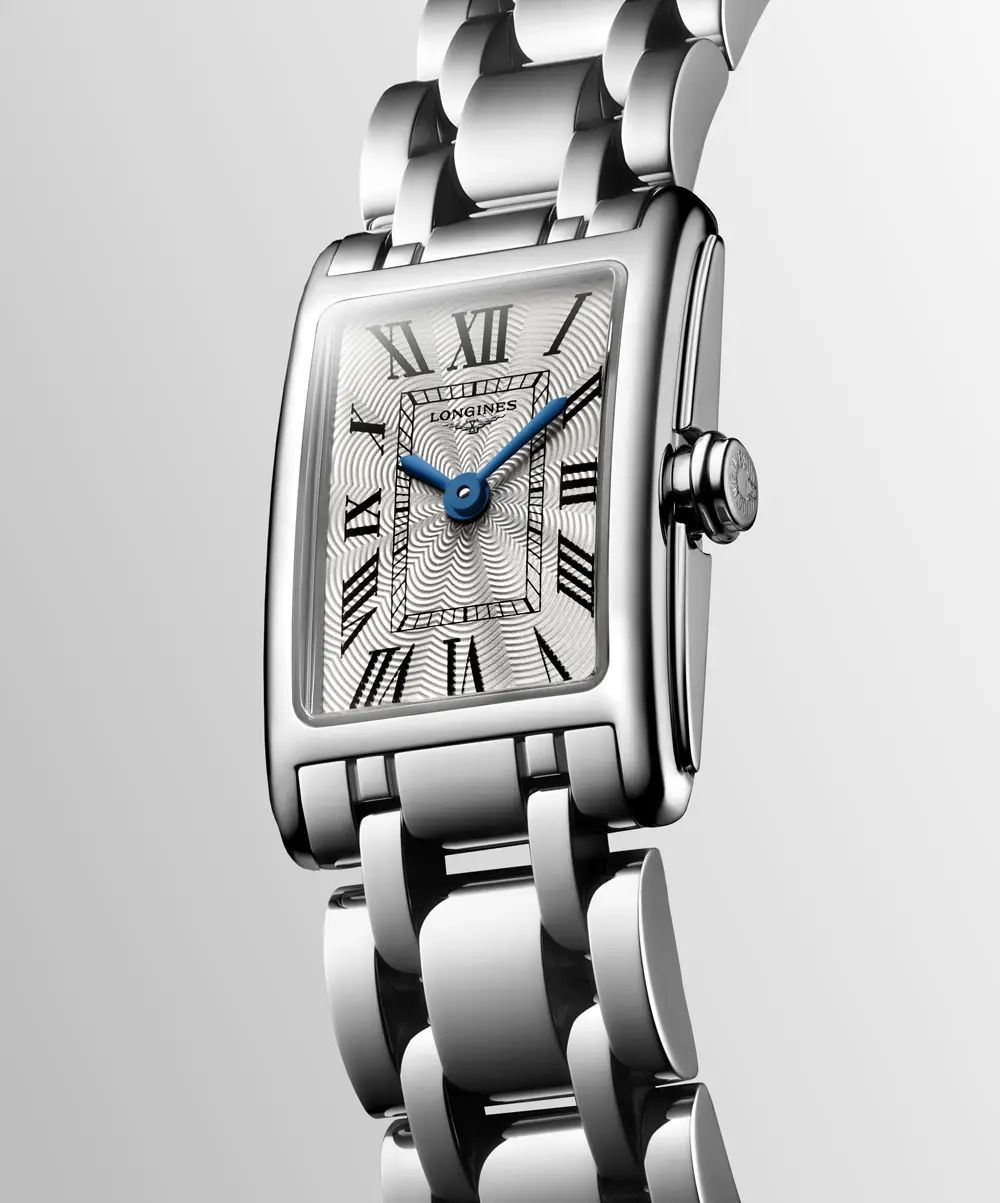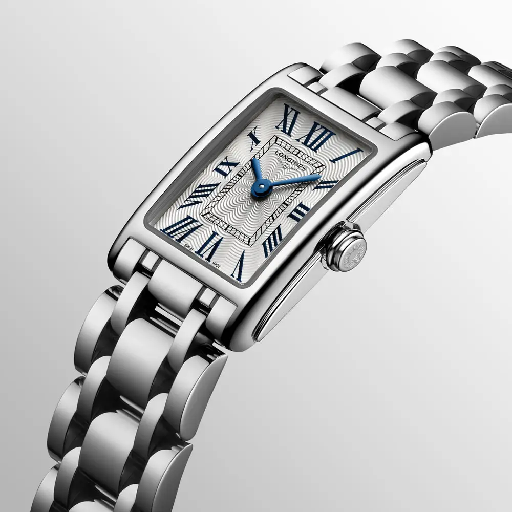 Longines 浪琴 DolceVita L5.258.4.71.6 是一款精致的女士腕表,展现了 DolceVita 系列的永恒优雅与女性魅力。17.70 × 27.00 毫米精钢表壳 搭配银色 “flinqué” 表盘、罗马数字与蓝钢指针,凸显经典气质。