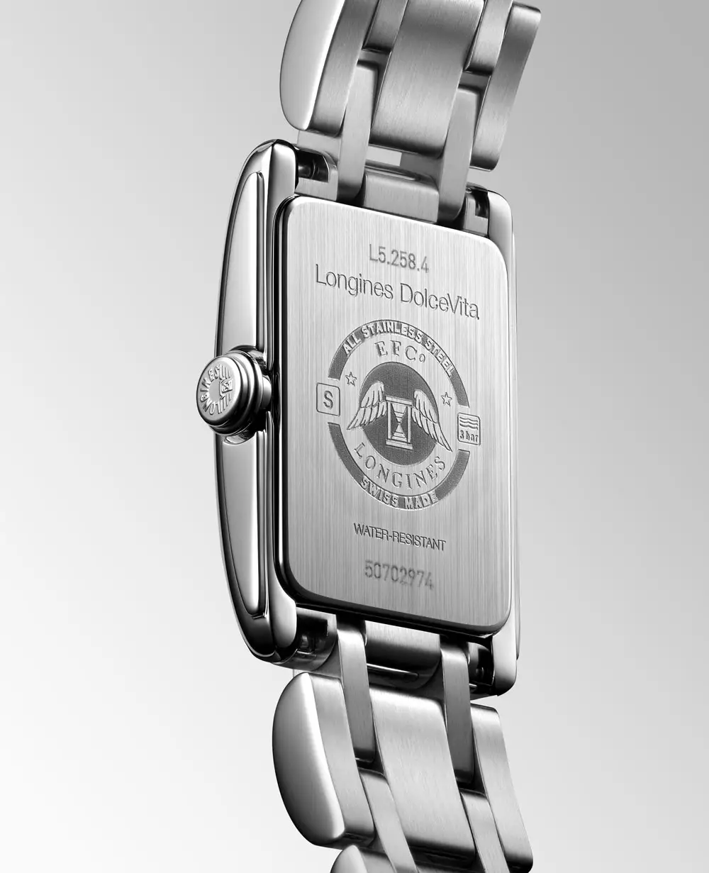 精钢表链配备 三重安全折叠表扣与按压式开合机制,佩戴舒适稳固。DolceVita L5.258.4.71.6 是女性理想之选,兼具 小巧、优雅与可靠性,适合日常佩戴及特殊场合。