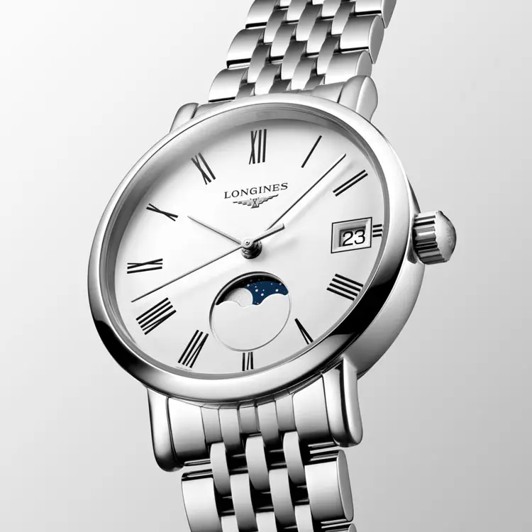 Longines Elegant Collection Moonphase 是女性(或手腕纤细的男士)的理想之选,结合了永恒设计、精美复杂功能与瑞士精准工艺于紧凑优雅的外观之中。