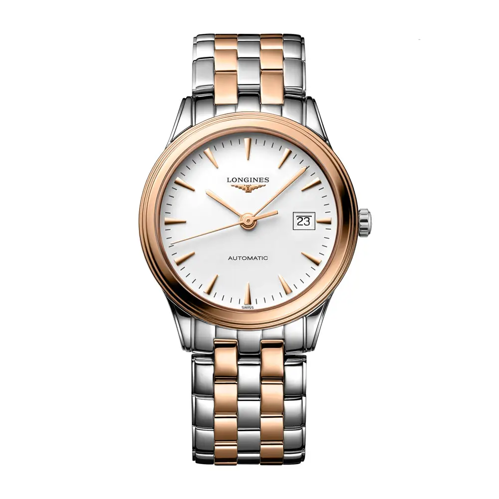 配以 精钢与玫瑰金 PVD 双色表链,舒适大方。Flagship Classic 是 瑞士奢华与永恒美学的象征,完美融合了传统、精准与风格。