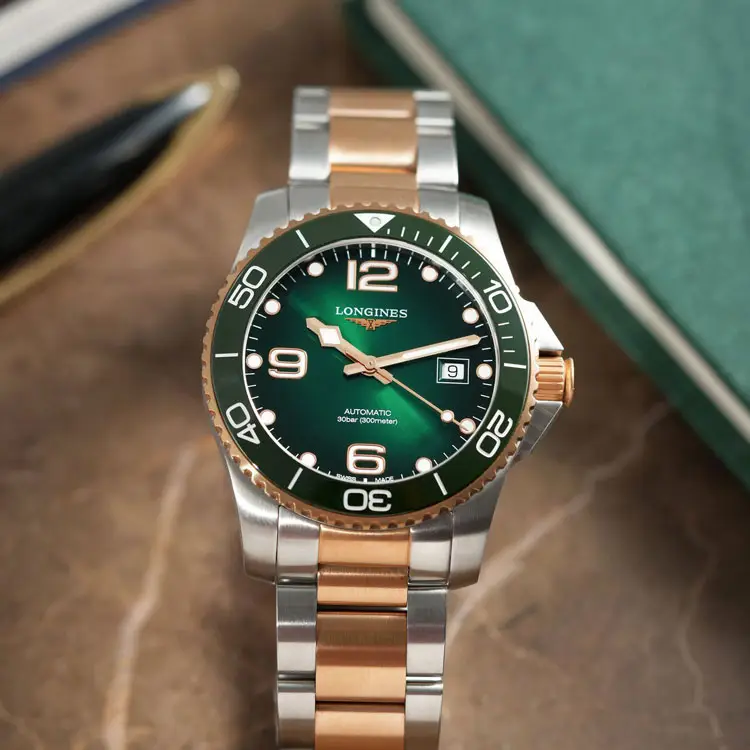 防水深度达 30 ATM(300 米),适合专业潜水使用。双色金属表带配折叠表扣,佩戴舒适又安全,突显腕表的高端质感。Longines HydroConquest L3.781.3.08.7 是追求运动功能与高贵品位的男士理想选择。