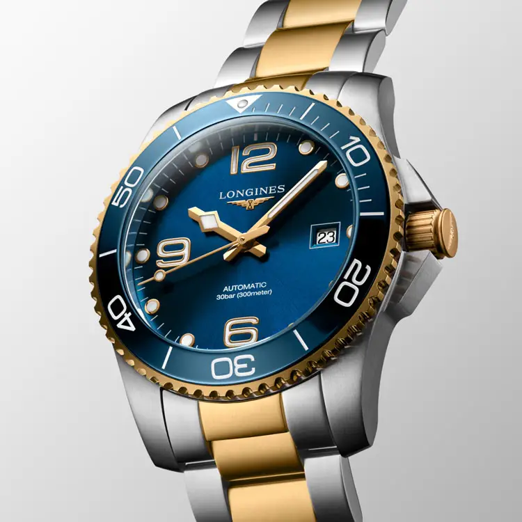 双色不锈钢与镀金表链 增添奢华气息,搭配 折叠式表扣,佩戴舒适且安全。浪琴 HydroConquest L3.781.3.96.7 是追求 运动实用性、优雅外观 与 瑞士制表传统 的男士之理想之选。