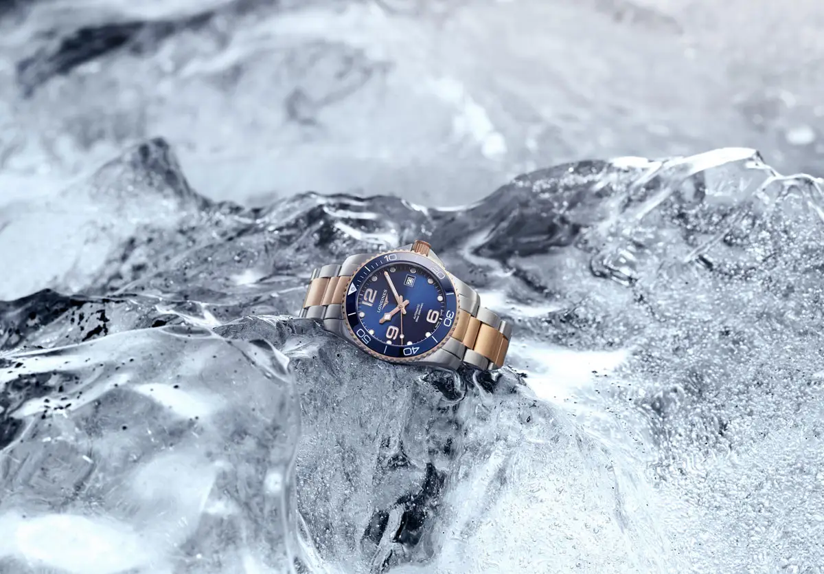 Longines HydroConquest L3.781.3.98.7 结合了 奢华感、运动优雅 与 顶尖技术性能。41 毫米圆形表壳 由 不锈钢搭配玫瑰金色点缀 制成,造型醒目而精致。蓝色表盘 配有清晰的时标,并由 带防反光涂层的蓝宝石水晶镜面 保护,同时具备 实用的日期显示。