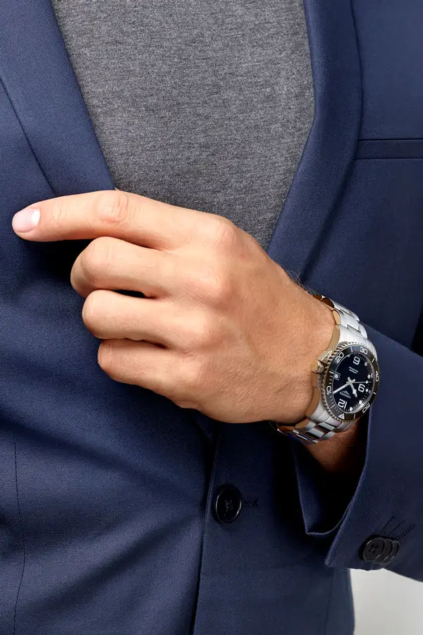 搭配 银色不锈钢表带 与 折叠式表扣,佩戴舒适牢靠。该型号完美融合了 技术性能 与 Longines经典美学,无论是在陆地还是水下,都能从容应对各种挑战。