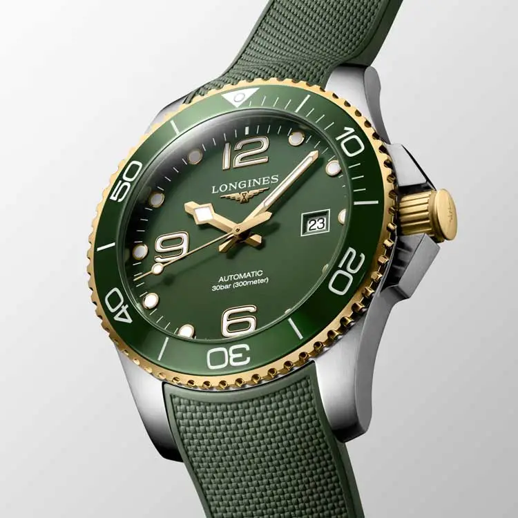 浪琴 HydroConquest L3.782.3.06.9 是一款坚固且时尚的潜水腕表,不仅具备卓越性能,更拥有现代绿色运动风格设计。专为追求可靠性、耐用性和美学价值的男士打造。