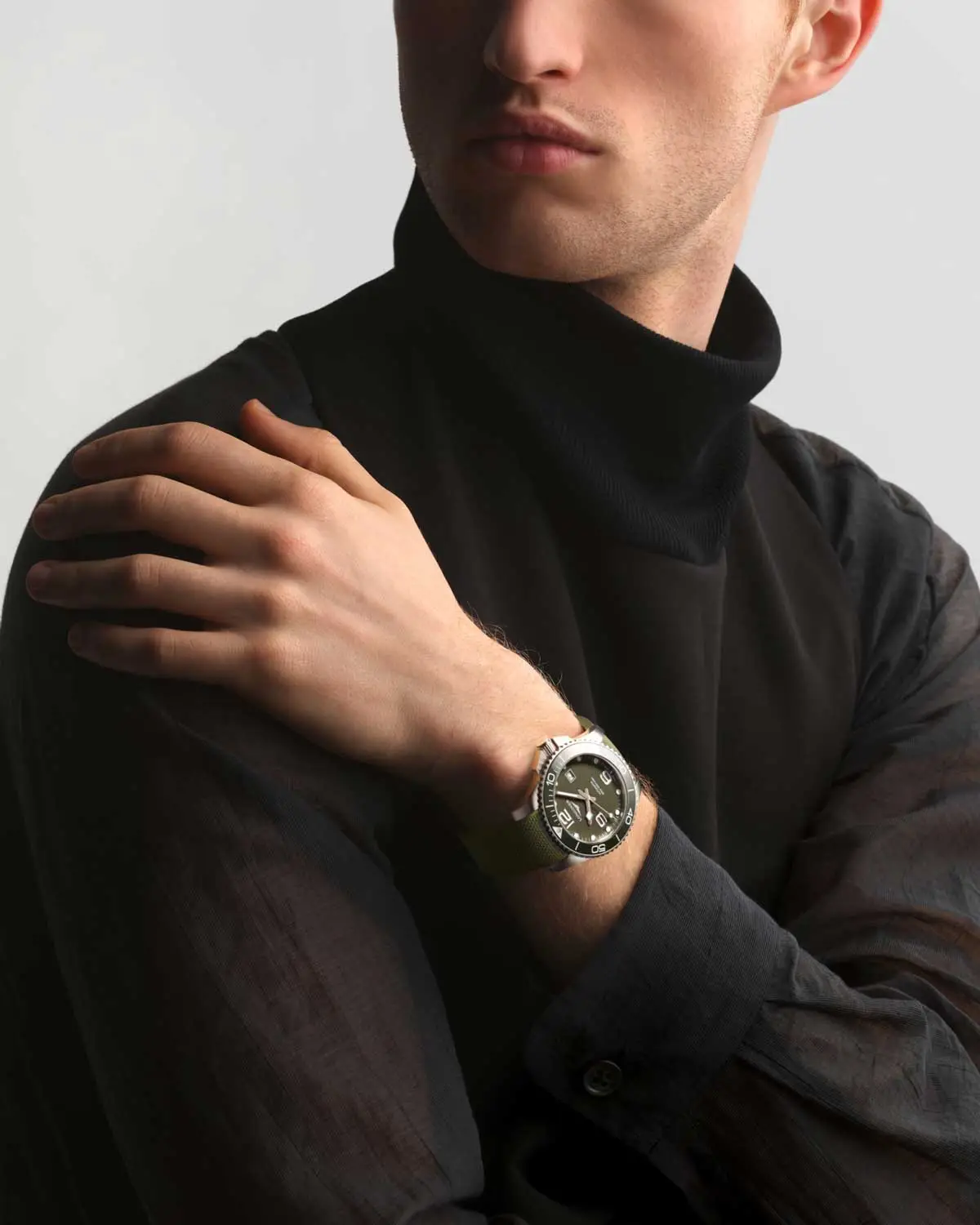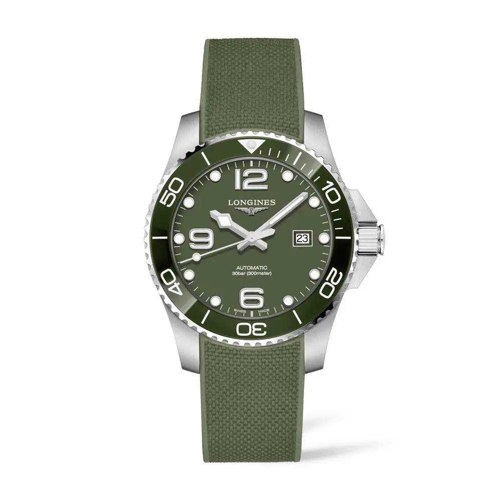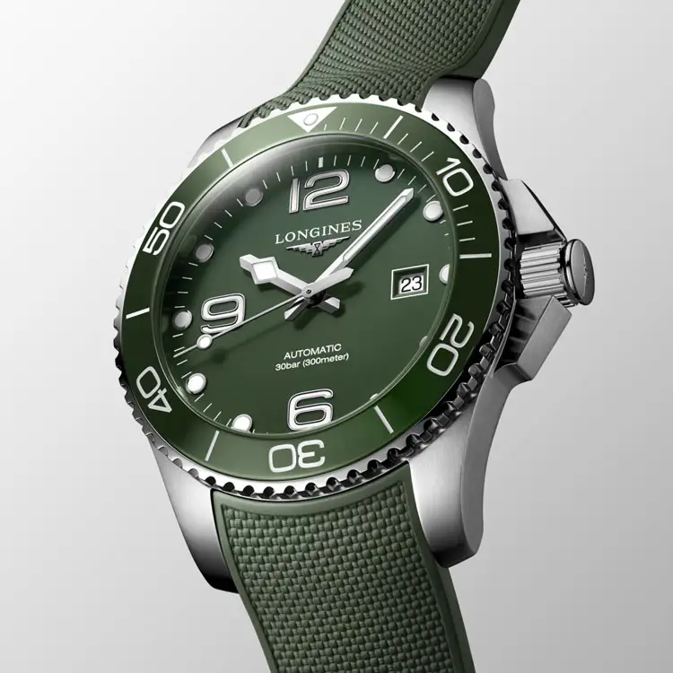 搭配绿色橡胶表带与折叠扣设计,佩戴舒适而富有运动感。HydroConquest L3.782.4.06.9 是理想之选,适合追求高性能、瑞士精准与现代设计的男士佩戴。